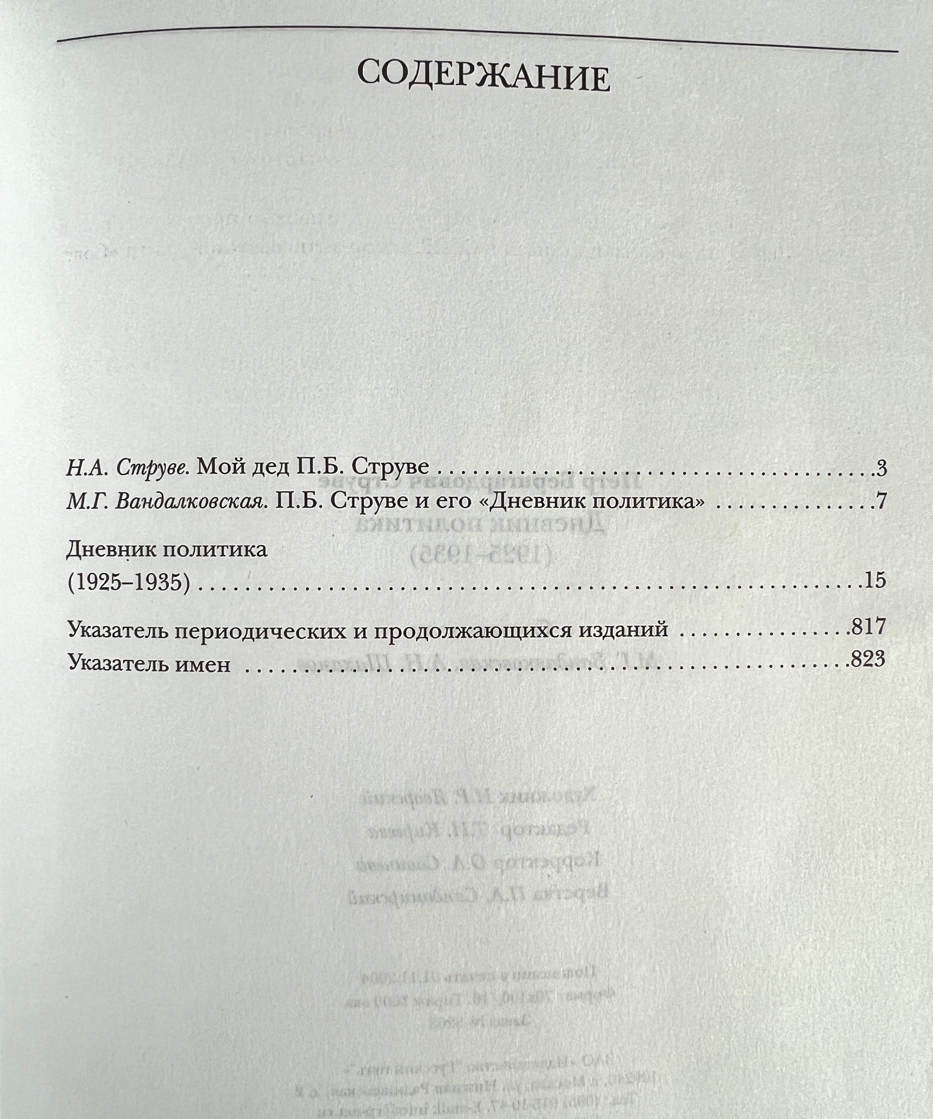 Zīmīgā ekonomista, politiķa un publicista P.B.Strūves (1870-1944) raksti, kas apvienoti zem virsraksta "Politiķa dienasgrāmata", ir atbildes uz visiem nozīmīgākajiem Krievijas, starptautiskās ekonomiskās, politiskās un kultūras dzīves notikumiem 20. gadsimta 20.-30. gados. Tās vispusīgi raksturo krievu emigrācijas liberāli konservatīvā spārna nostāju attiecībā uz padomju politisko un ekonomisko sistēmu un tās attīstības perspektīvām. Šīs publikācijas mērķis ir veicināt P. B. Strūves radošā mantojuma un krievu emigrācijas vēstures padziļinātu izpēti. Tā ir interesanta speciālistiem, skolotājiem un studentiem, kā arī plašam lasītāju lokam, kas interesējas par Krievijas vēsturi.