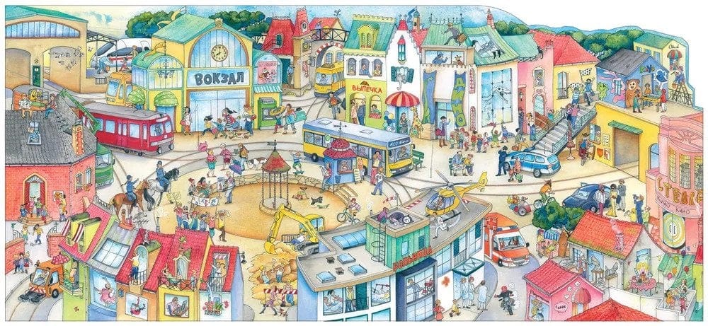 Vai esat gatavi braukt gar jūras krastu un baudīt kalnu skatus? Pastaigāties pa mājīgām pilsētiņām un satikt to iedzīvotājus? Vilciens jau izbrauc no stacijas! Atver grāmatu, aplūko katru panorāmas ainu un ceļo kopā ar varoņiem pa šīs neparastās vimpeļgrāmatas lappusēm! Ar to brīnumi nebeidzas: dažās lappusēs ir izgriezti tuneļu logi, un dažās ir atlokāmi atvāžņi, lai atklātu tik garas lappuses, ka uz tām var ietilpt viss vilciens!