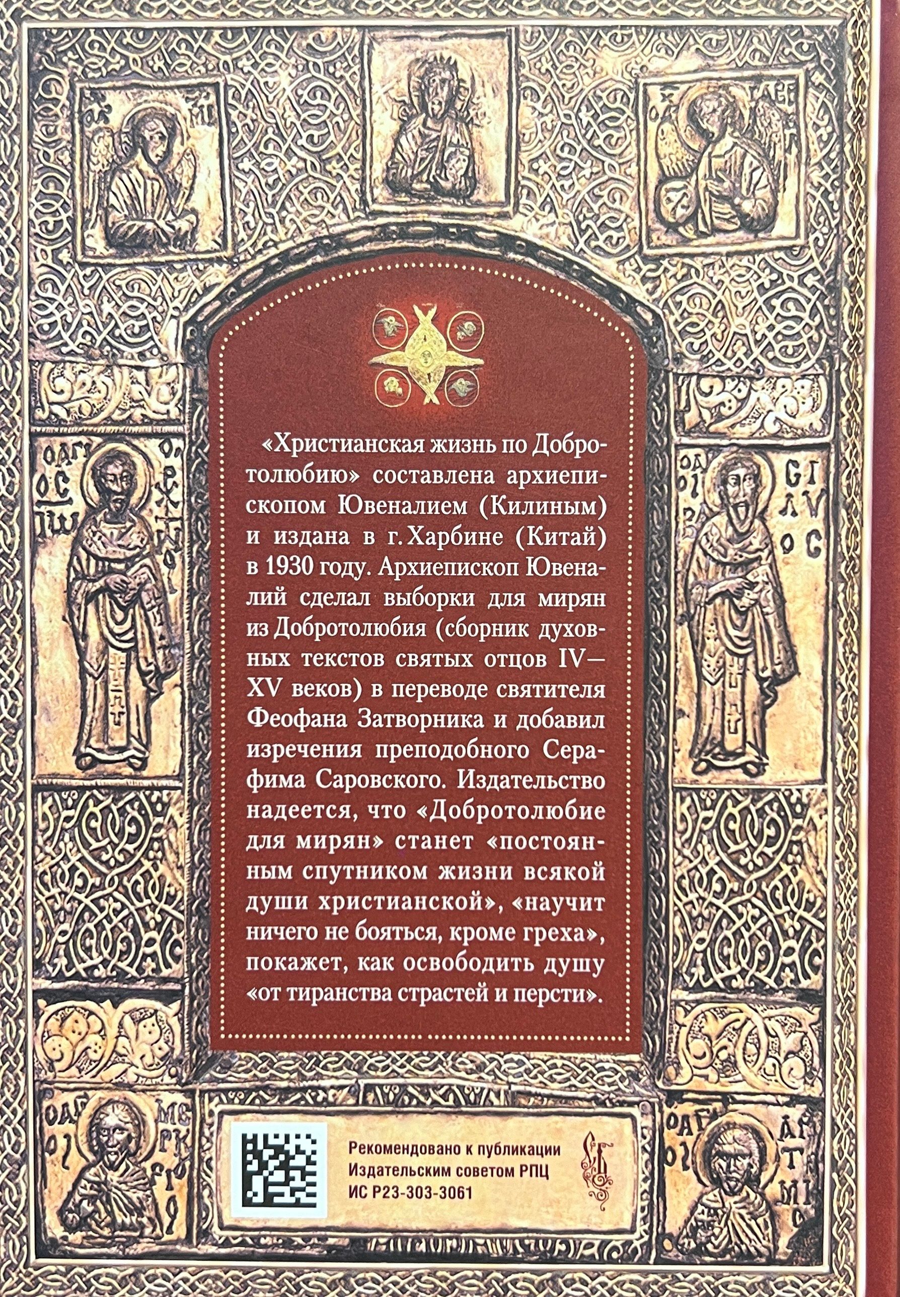 Šī grāmata ir arhibīskapa Juvenālija (Kilina) darba "Kristīgā dzīve saskaņā ar Filokāliju: Izvēlētas fragmenti no Svēto Tēvu un Baznīcas skolotāju darbiem" atkārtots izdevums, kas izdots Harbinā, Ķīnā, 1930. gadā. Izdevējs cer, ka šī grāmata kļūs par "pastāvīgu pavadoni katras kristietes dvēseles dzīvē", "mācīs mums nebaidīties ne no kā cita kā vien no grēka" un parādīs, kā atbrīvot dvēseli "no kaislību un putekļu tirānijas". Šī atkārtotā izdevuma sagatavošanas laikā tika sastādīts vārdu rādītājs, un teksta pareizrakstība un pieturzīmes tika pielāgotas mūsdienu krievu valodas standartiem.