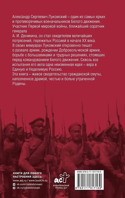 Savos memuāros Lukomskis atklāti raksta par armijas sabrukumu, Brīvprātīgo armijas dzimšanu, cīņu pret boļševikiem un sarežģītajiem lēmumiem, ar kuriem saskārās Baltās kustības vadība. Visos šajos pārbaudījumos viņu vadīja viena nemainīga ideja: ticība vienotai un nedalāmai Krievijai.