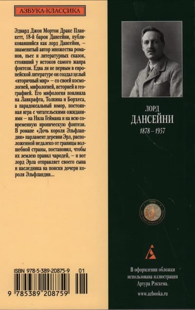 Edvards Džons Mortons Drekss Plankets, 18. barons Dansanijs, kurš publicējās kā lords Dansanijs, bija slavens daudzu romānu, lugu un literāru stāstu autors, kā arī paša fantāzijas žanra pionieris. Viņš, iespējams, bija pirmais Eiropas literatūrā, kas radīja veselu "sekundāro pasauli" — ar savu kosmoloģiju, mitoloģiju, vēsturi un ģeogrāfiju. Viņa mitoloģija ietekmēja Lavkraftu, Tolkīnu un Borhesu, savukārt viņa paradoksālais humors un pastāvīgā spēle ar lasītāju gaidām ietekmēja Nīlu Geimenu un visu mūsdienu ironisko fantāziju. Romānā "Elflandes karaļa meita" Erlas ciema, kas atrodas netālu no maģiskās zemes robežas, parlaments nolemj, ka burvim jāpārvalda viņu zeme — un tāpēc Erlas lords sūta savu dēlu un mantinieku meklēt Elflandes karaļa meitu...