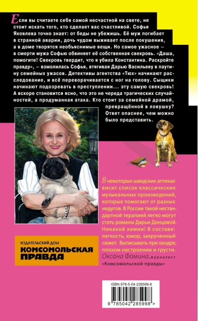 "Daša, palīdzi! Mana vīramāte uzstāj, ka es nogalināju Konstantīnu. Atklāj patiesību," lūdza Sofija, ievelkot Darju Vasiļjevu ģimenes šausmu tīklā. Tjuhas aģentūras detektīvi sāk izmeklēšanu, un viss apgriežas kājām gaisā. Detektīvi sāk aizdomāties... tieši par to pašu vīramāti!