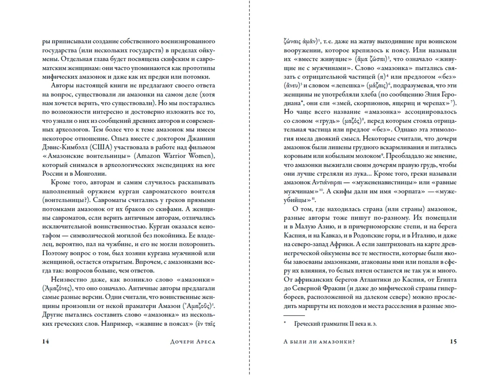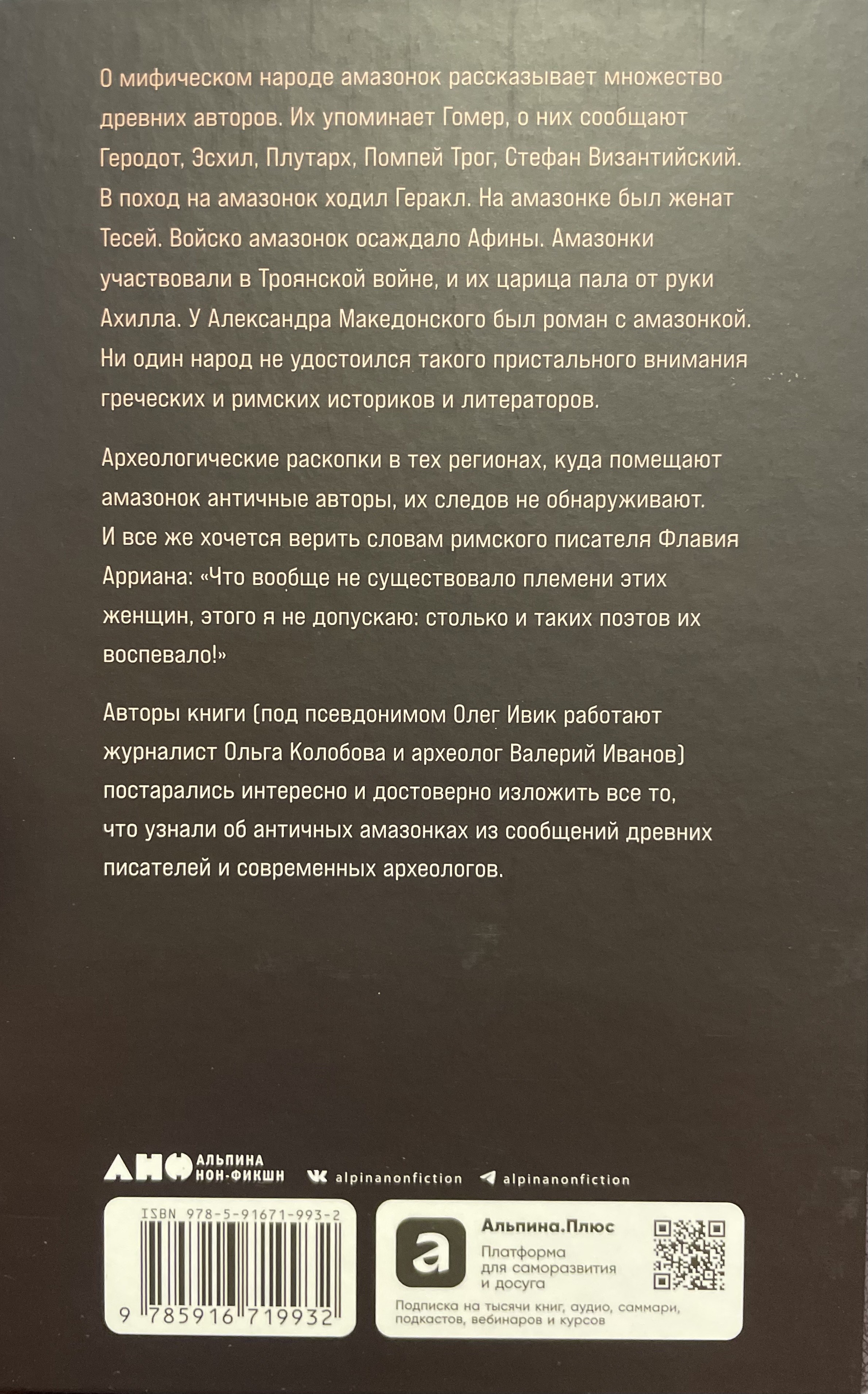 Terminu "amazones" bieži lieto, lai aprakstītu jebkuru karotāju sievieti. Taču šīs grāmatas autori (žurnāliste Olga Kolobova un arheologs Valērijs Ivanovs, rakstot ar pseidonīmu Oļegs Iviks) ir veltījuši savu darbu īstām amazonēm: sievietēm, kurām senie autori piedēvē savu militarizēto valstu dibināšanu ekumenes ietvaros. Viņi arī izpētīs skitu un sauromatiešu karotāju sievietes — viņu vēsture ir pārāk cieši saistīta ar mitoloģisko amazonu vēsturi.