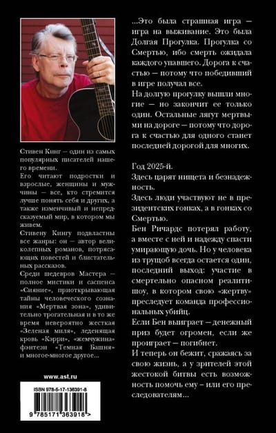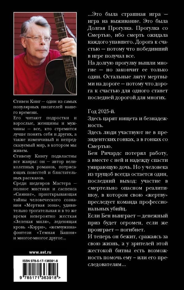 ...Tā bija biedējoša spēle - izdzīvošanas spēle. Tā bija Garā pastaiga. Pastaiga ar nāvi, jo nāve gaidīja katru, kurš krita. Ceļš uz laimi - jo spēles uzvarētājs ieguva visu. Daudzi devās garajā pastaigā, bet tikai viens to varēja pabeigt. Pārējie gulēs miruši uz ceļa - jo ceļš uz laimi vienam būs pēdējais ceļš daudziem. Ir 2025. gads. Šeit valda nabadzība un bezcerība. Šeit cilvēki piedalās nevis prezidenta vēlēšanās, bet gan sacensībā ar nāvi. Bens Ričardss ir zaudējis darbu un līdz ar to arī cerību glābt savu mirstošo meitu. Taču vīrietim no graustu graustiem vienmēr ir viena, pēdējā izeja: dalība nāvējošā realitātes šovā, kurā viņa "upuri" vajā profesionālu slepkavu komanda. Ja Bens uzvarēs, naudas balva būs milzīga; ja viņš zaudēs, viņu gaida nāve.....