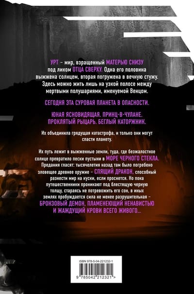 Viņu ceļš ved uz izdegušajām zemēm, kur nežēlīgā saule tuksneša smiltis ir pārvērtusi melna stikla jūrā. Leģendas vēsta, ka pirms gadu tūkstošiem tur tika aprakts draudīgs sens ierocis — guļošs pūķis, kas, pamostoties, spētu sagraut pasauli. Bet, ceļotājiem iekļūstot zem mirdzošās melnās masas, uzmanīgi, lai netraucētu tās miegu, citās zemēs mostas ne mazāk postošs spēks — bronzas dēmons, kas kvēlo naidā un alkst pēc visu dzīvo būtņu asinīm...