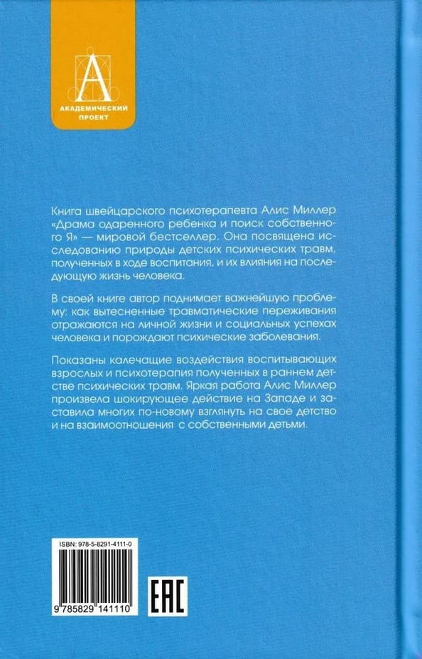 Šveiciešu psihoterapeites Alises Milleres grāmata "Apdāvinātā bērna drāma un sevis meklējumi" ir pasaules bestsellers. Tā ir veltīta bērnībā gūto psihisko traumu, kas gūtas audzināšanas laikā, rakstura izpētei un to ietekmei uz cilvēka turpmāko dzīvi. Grāmatā autors izvirza svarīgāko problēmu: kā izstumtie traumatiskie pārdzīvojumi atspoguļojas cilvēka personīgajā dzīvē un sociālajos panākumos un izraisa psihiskas slimības. Tiek parādīta audzinošu pieaugušo un agrīnās bērnības psihisko traumu psihoterapijas kropļojošā ietekme. Alises Milleres spilgtais darbs Rietumos izraisīja satriecošu rezonansi un lika daudziem cilvēkiem no jauna paraudzīties uz savu bērnību un attiecībām ar saviem bērniem.
