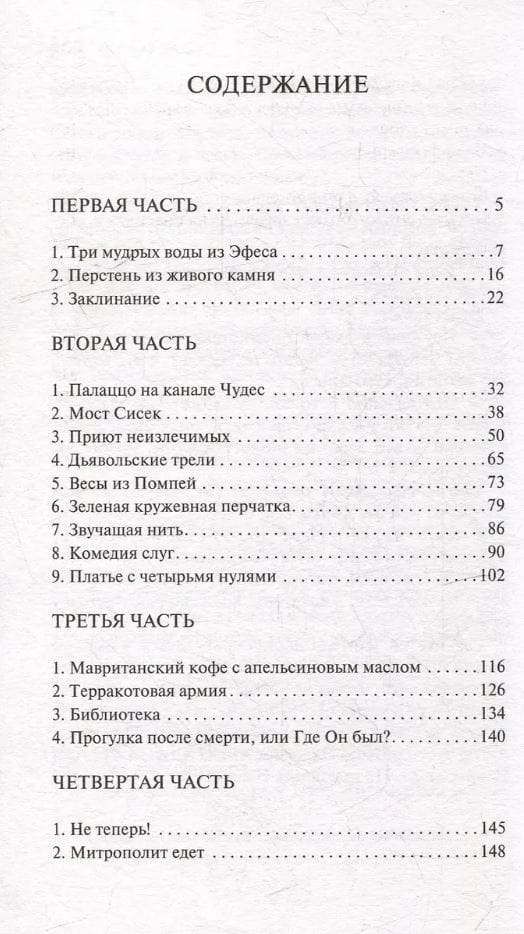 Telefona zvans. Šis ir Elizabetes Sviftas nelaiķis vīrs un nepilna laika stāstītāja. Vai viņš tiešām atklāja cita ķermeņa noslēpumu un ieguva nemirstību? Atbildes var atrast 18. gadsimta Venēcijā. Anna un viņas mīļākais Zaharija atrod mājas īpašnieku mirušu. Viņš veica dīvainu rituālu ar dzejoli, akmens gredzenu, kas mainīja krāsu, un Jaunavas Marijas asarām. Tomēr viņu nenogalināja burvestības, bet gan inde. Varoņi nolemj atkārtot burvestību, bet pirms tam Anna pirmo reizi atdod sevi Zaharijam trokšņainā karnevāla vidū.
