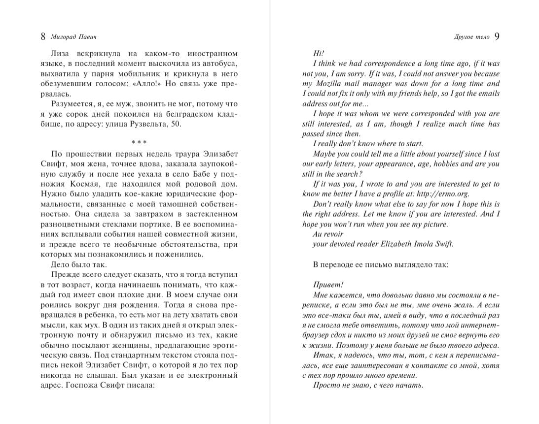 Milorads Pavičs ir serbu rakstnieks, kuru kritiķi dēvē par ne mazāk kā 21. gadsimta pirmo rakstnieku. Romāns "Cita miesa" ir piepildīts ar maģisko reālismu.