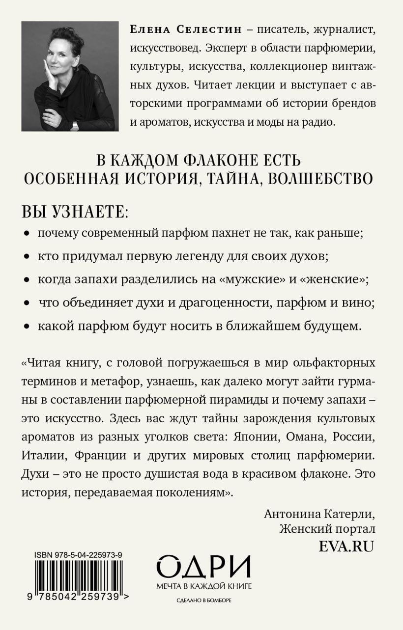 Šī ir trešā grāmata, kuras autore ir Elena Celestine, parfimērijas un mākslas eksperte un bestselleru autores "Tas pats par sevi". Grāmatā tiks pētīti dažādie parfimērijas aspekti un nozīmes, maģiskie stāsti un noslēpumi, kas slēpjas tās pudelītēs. Aizraujoša, ar iedvesmu un vieglumu uzrakstīta šī grāmata ir brīnišķīga dāvana ikvienam, kurš mīl smaržas un novērtē skaistumu. Tagad jaunā mini formātā, ērti paņemama līdzi!