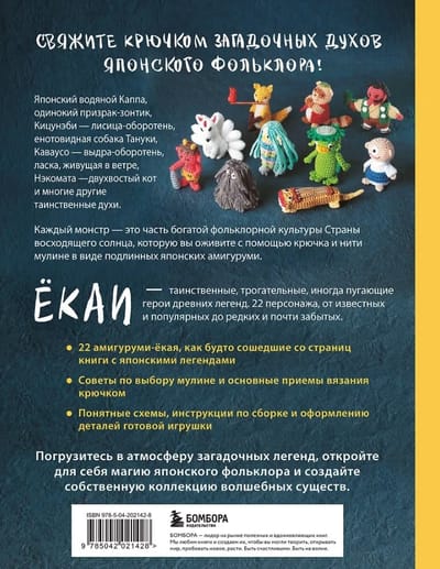 Iegremdējieties noslēpumainajā un brīnumainajā yokai pasaulē — varoņu pasaulē no Uzlecošās Saules zemes leģendām. Šī grāmata ir īsts dārgums tiem, kam patīk amigurumi un kuri vēlas uztamborēt kaut ko patiesi unikālu. Iedvesmojoties no japāņu mitoloģijas, tā pārveido senus stāstus harizmātiskās rotaļlietās, kuras var tamborēt, izmantojot parastu izšūšanas diegu un tamboradatu.