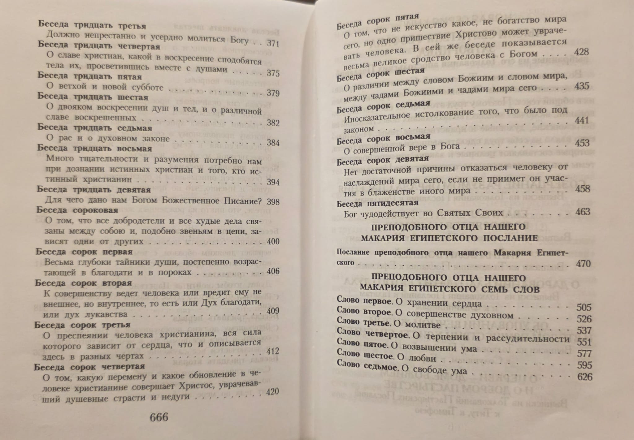 Svētais Makarijs ir viens no 4. gadsimta Ēģiptes tuksneša tēviem, kurš tur pavadīja 60 gadus un sava svētuma un gudrības dēļ tika dēvēts par Lielo. Svētā Makarija mācības galvenā tēma ir Dieva žēlastība, kas glābj cilvēku. Gandrīz katrā sarunā, gandrīz katrā vārdā viņš runā par žēlastību: viņš parāda tās nepieciešamību, norāda uz līdzekļiem tās iegūšanai un attēlo tās darbību. Neskatoties uz tēmas dziļumu un noslēpumainību, pieredzējušā skolotāja sarunas un norādījumi ir skaidri un saprotami. To, kas varētu būt nesaprotams garīgā pacēluma dēļ, svētais Makarijs palīdz saprast ar salīdzinājumiem un tēliem, kas vienmēr ir vienkārši un vēl jo spilgtāki.