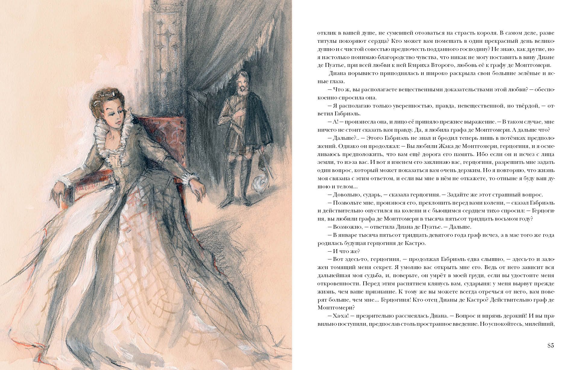 Romāns "Divas Diānas" aizrauj lasītāju ar sarežģītu intrigu un negaidītiem sižeta pavērsieniem, kuros nesaraujami savijas Aleksandra Dumas monumentālo vēsturiski piedzīvojumu darbu meistara iz-toriskie fakti un fantāzijas. Grāmata stāsta par traģiskiem notikumiem, kas risinājās XVI gadsimta Francijas pilsoņu un reliģisko karu priekšvakarā. Jaunais Gabriels, sasniedzis pilngadību, no māsas uzzina par savu patieso izcelsmi un tiek ierauts pils intrigu virpulī. Viņš vēlas atrast savu tēvu, kurš pirms daudziem gadiem pazudis bez vēsts - vai atriebties par viņa nāvi. Pēc sešiem gadiem Gabriels, kurš ir lieliski veicis dienestu armijā, iemīlas skaistajā jaunības draudzenē Diānā de Kastro un plāno viņu apprecēt. Tomēr medmāsa apgalvo, ka, iespējams, arī Gabriēla tēvs, grāfs de Montgomerī, ir īstais Diānas tēvs... Jauno grāfu gaida izmisīga cīņa ar Francijas ienaidniekiem, bruņinieku turnīri, karaļa negods un viņa viltīgās un bezkaislīgās kalpones Diānas de Puatjē intrigas, kura ceļā uz savu mērķi neapstāsies ne pie kā. Grāmata ilustrēta ar viegliem, gaisīgiem un vienlaikus dinamiskiem Oksanas Šulgas darbiem.
