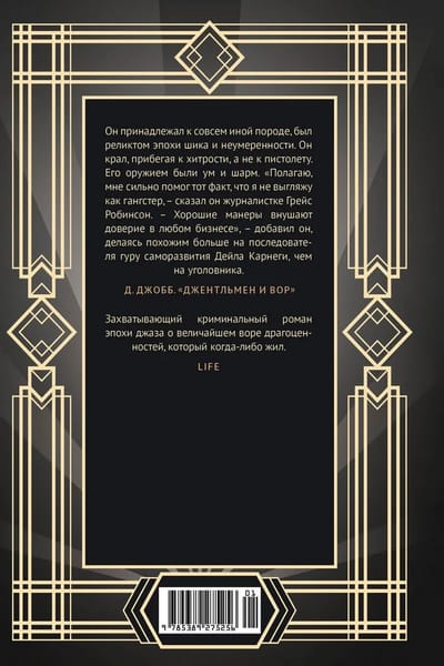 Aizraujošs džeza laikmeta kriminālromāns par Artūru Beriju, "vislielāko dārgakmeņu zagli, kāds jebkad ir dzīvojis" (žurnāls Life). Viņš savaldzināja ikvienu, sākot no Rokfelleriem līdz pat karaliskajai ģimenei, plānojot un īstenojot visdrosmīgākās un ienesīgākās 20. gs. divdesmito gadu laupīšanas. Septiņu gadu laikā Zagļu princis nozaga gandrīz 60 miljonus dolāru dimantu, pērļu un dārgakmeņu vērtībā.