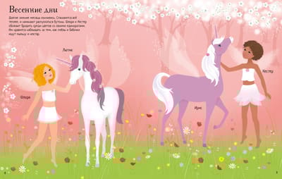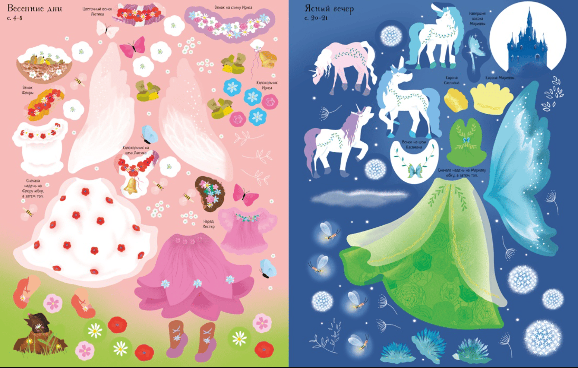 Maģiskajai pasaulei un tās iemītniekiem trūkst gleznainu detaļu! Izrotājiet draudzīgus vienradžus ar ogu un augu vainagiem, izvēlieties tērpus jaukām fejām un iestādiet smaržīgus ziedus pļavās. Lasiet un spēlējieties! Attīstiet uzmanību, iztēli, smalko motoriku un māksliniecisko gaumi.