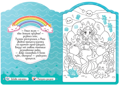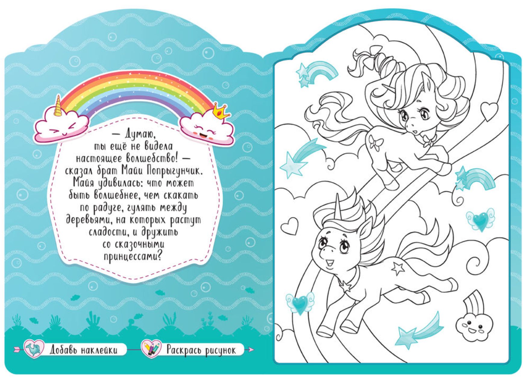 Šajā grāmatā ir aizraujošs pasaku stāsts par burvīgo vienradžu Majas un Džampija piedzīvojumiem, kā arī astoņi lieli attēli, kurus var izkrāsot un pēc tam izrotāt ar uzlīmēm. Grāmatas beigās mākslinieks saņems pārsteigumu — krāsainu diplomu no Majas un viņas draugiem.