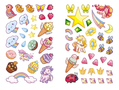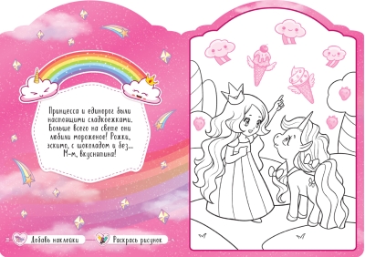 Šajā grāmatā ir aizraujošs pasaku stāsts par burvīgās vienradža Majas un princeses Lilijas piedzīvojumiem, kā arī astoņi lieli attēli, ko izkrāsot un pēc tam izrotāt ar uzlīmēm. Grāmatas beigās māksliniece saņems pārsteigumu — krāsainu diplomu no Majas un viņas draugiem.