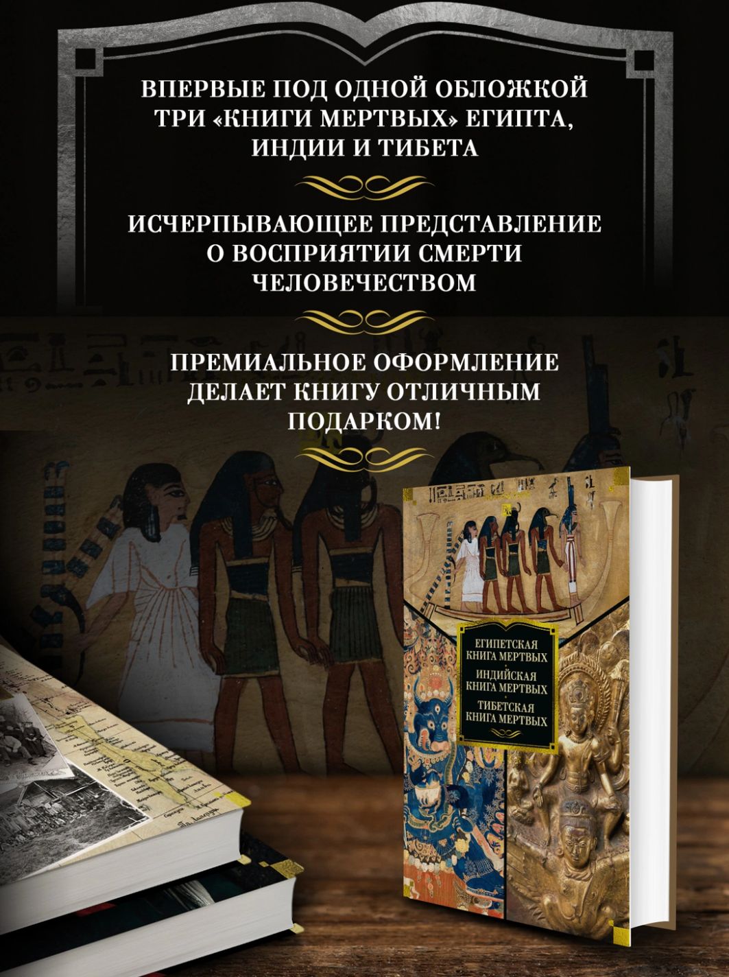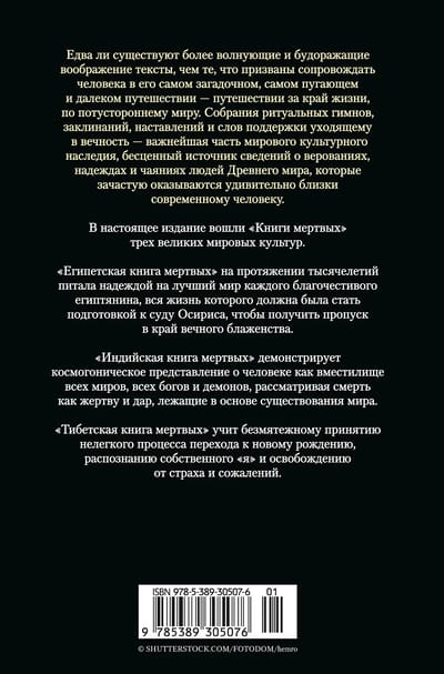Šajā izdevumā iekļautas Mirušo grāmatas no trim lielām pasaules kultūrām.