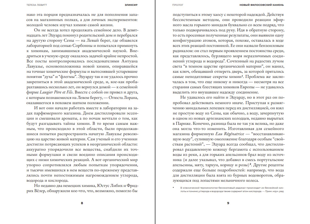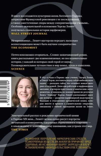 Savā grāmatā “Eliksīrs” vēsturniece Terēze Levita stāsta divus nesaraujami saistītus stāstus: parfimērijas rūpniecības attīstību Francijā un organiskās ķīmijas rašanos. Kopā šie stāsti noveda ķīmiķus pie viena no pārsteidzošākajiem zinātniskajiem atklājumiem, kas saistīti ar dzīvības izcelsmes noslēpumu uz Zemes.