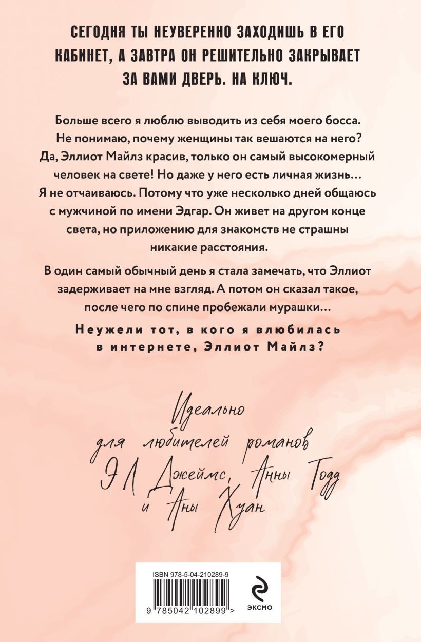 Šodien tu šaubīgi ieej viņa kabinetā, un rīt viņš apņēmīgi aizver aiz tevis durvis. Uz atslēgas. Mana mīļākā lieta, ko darīt, ir apbēdināt savu priekšnieku. Es nesaprotu, kāpēc sievietes tik ļoti turas pie viņa? Jā, Eliots Mails ir izskatīgs, bet viņš ir augstprātīgākais cilvēks pasaulē! Bet pat viņam ir personīgā dzīve... Es nekrītu izmisumā. Jo es jau vairākas dienas runāju ar vīrieti vārdā Edgars. Viņš dzīvo otrā pasaules malā, taču iepazīšanās lietotne nebaidās no nekāda attāluma. Kādu parastu dienu es sāku pamanīt, ka Eliots nepievērš uzmanību man. Un tad viņš teica kaut ko tādu, kas man pārņēma drebuļus...