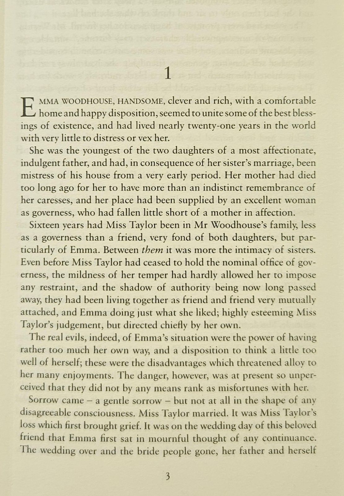 Emma, kas ilgu laiku tiek slavēta par bagātīgajām detaļām un nevainojamo meistarību, ir viens no klasiskajiem šedevriem, pie kura lasītāji atkal un atkal atgriežas, pateicoties tās neizsmeļamajam cilvēcības fondam.