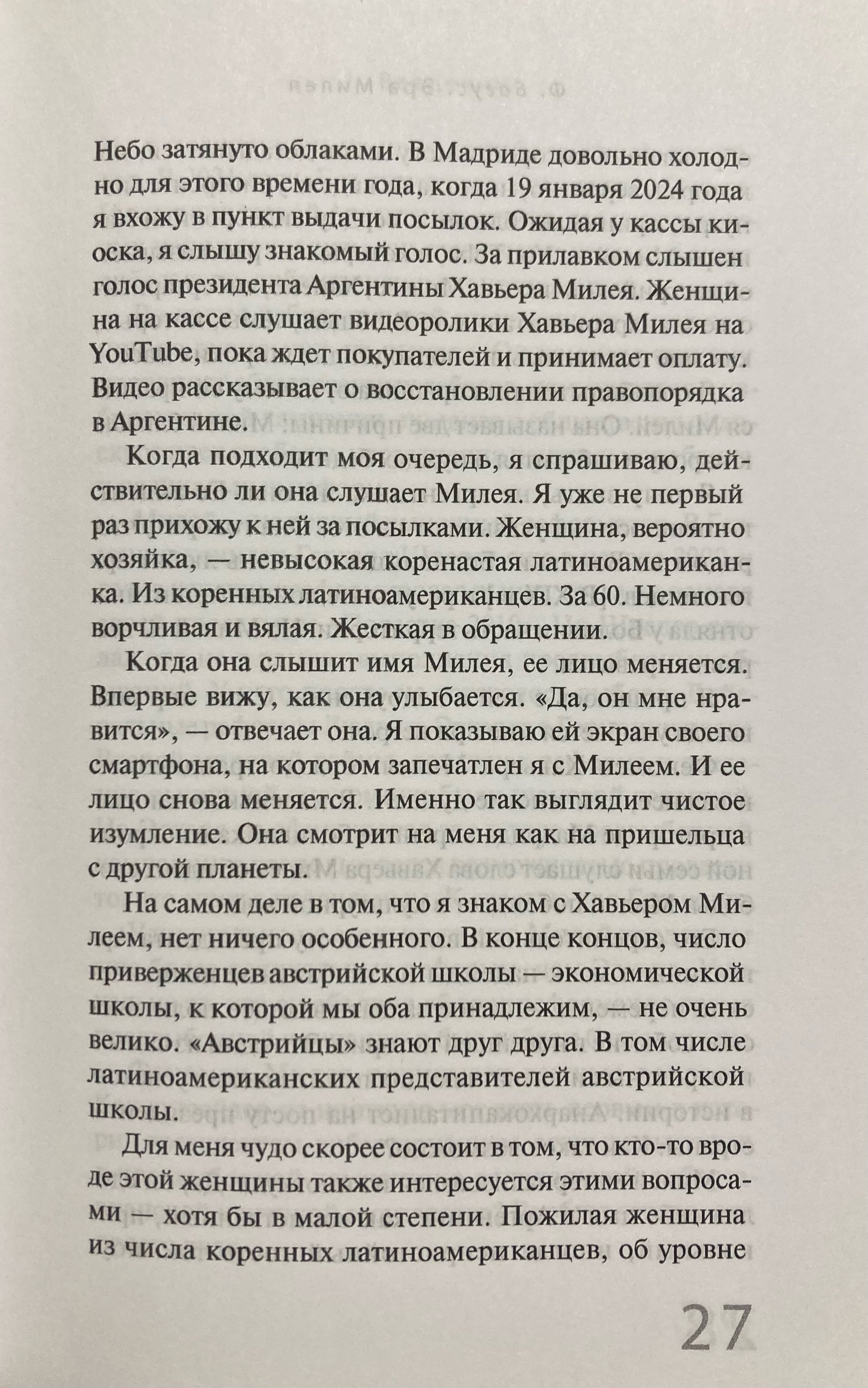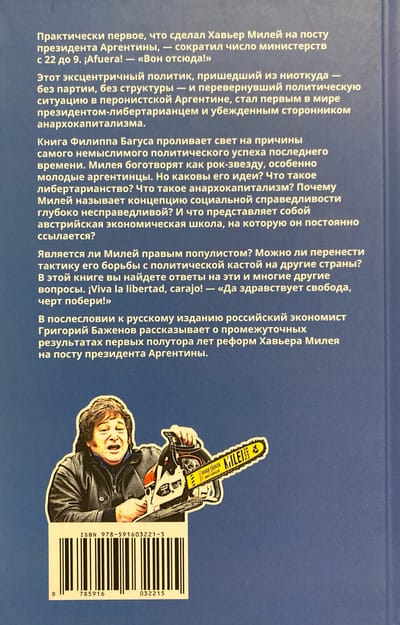 Filipa Bagusa grāmata izgaismo pēdējā laika neiedomājamāko politisko panākumu iemeslus. Mailijs tiek idealizēts kā rokmūzikas zvaigzne, īpaši jauno argentīniešu vidū. Bet kādas ir viņa idejas? Kas ir libertārisms? Kas ir anarhokapitālisms? Kāpēc Mailijs sociālā taisnīguma jēdzienu sauc par dziļi netaisnīgu? Un kāda ir Austrijas ekonomikas skola, uz kuru viņš pastāvīgi atsaucas?