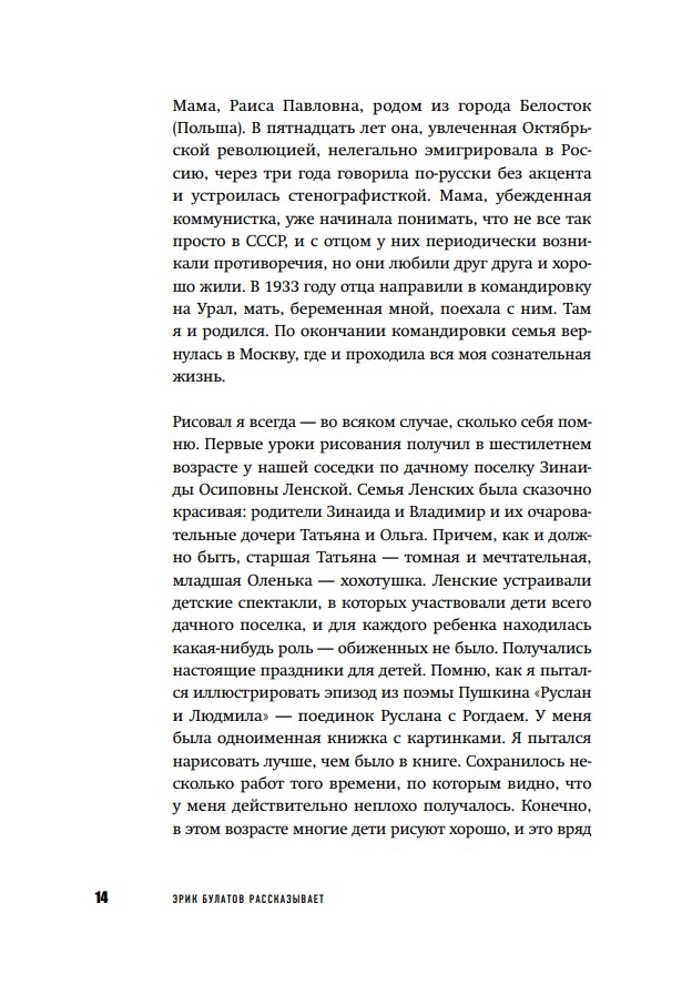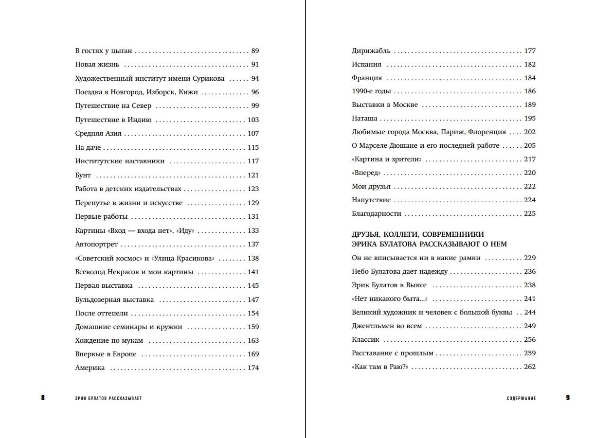 Ērika Bulatova (dz. 1933. gadā), viena no "Soc Art" dibinātājiem un viena no mūsdienu krievu māksliniekiem, autobiogrāfija. Grāmatā viņš atceras savu bērnību, jaunību, ceļojumu mākslas pasaulē un nozīmīgākās tikšanās ar Falku, Favorski un Fonvizinu, pārdomājot glezniecību un radošumu. Grāmatas otrajā daļā ir iekļautas mākslinieka draugu un domubiedru — Elviras Nabiulļinas, Zelfiras Tregulovas, Marinas Lošakas, Ļeva Rubinšteina, Semjona Faibisoviča un citu — atmiņas par mākslinieku.