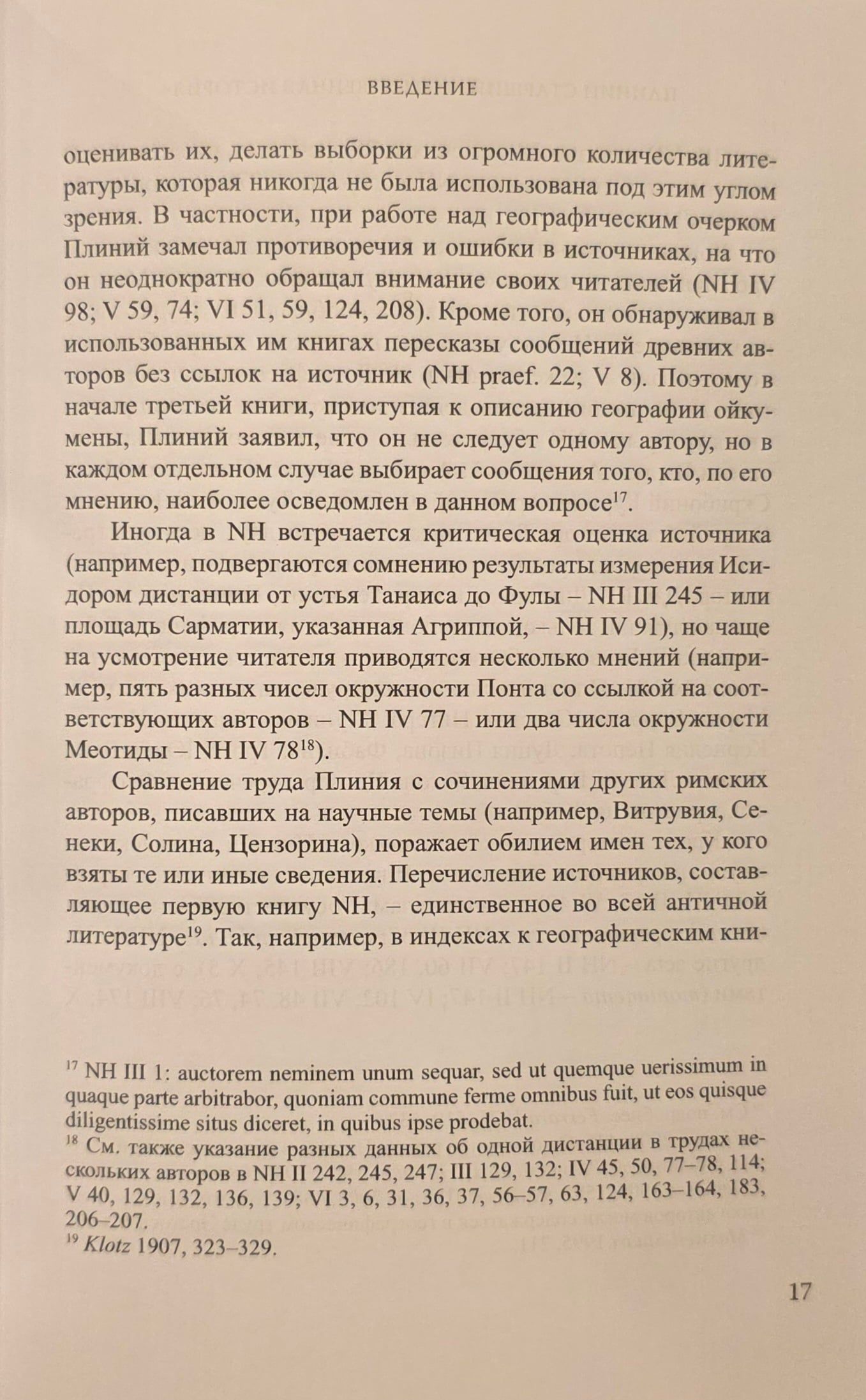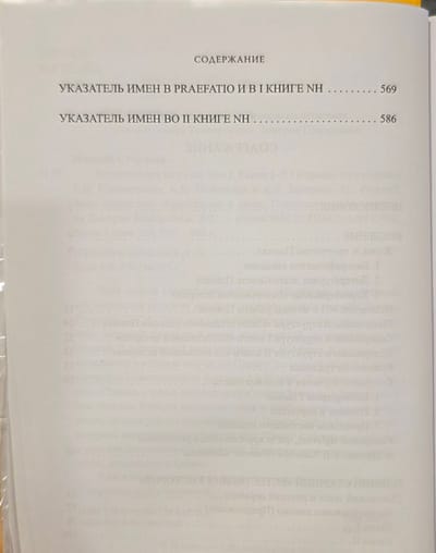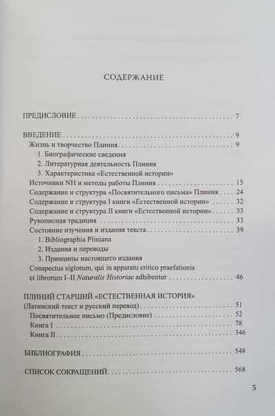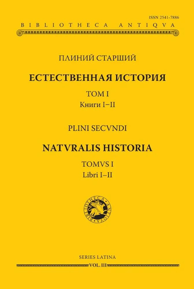Ar šo grāmatu izdevniecība sāk romiešu rakstnieka un enciklopēdista Plinija Vecākā (23/24 - 79 mūsu ēras) daudzsējumu "Dabas vēstures" izdošanu, kurā apkopota gandrīz visa līdz Plinija dzīves laikam uzkrātā antīkās kultūras un zinātnes pieredze. Šajā I sējumā iekļauts ievads, kurā aprakstīta Plīnija dzīve un darbs, "Dedikācijas vēstules" latīņu teksts un tulkojums krievu valodā, Plīnija "Dabas vēstures" I un II grāmata, kā arī teksta komentārs. "Veltījuma vēstulē" Plīnijs iepazīstina lasītāju ar sava darba problemātiku, materiāla apstrādes metodēm. "Dabas vēstures" pirmajā grāmatā sniegts visu 37 grāmatu kopsavilkums un viņa darba grieķu un romiešu avotu saraksts. Otrajā grāmatā aplūkota kosmoloģija, astronomija un fizika.