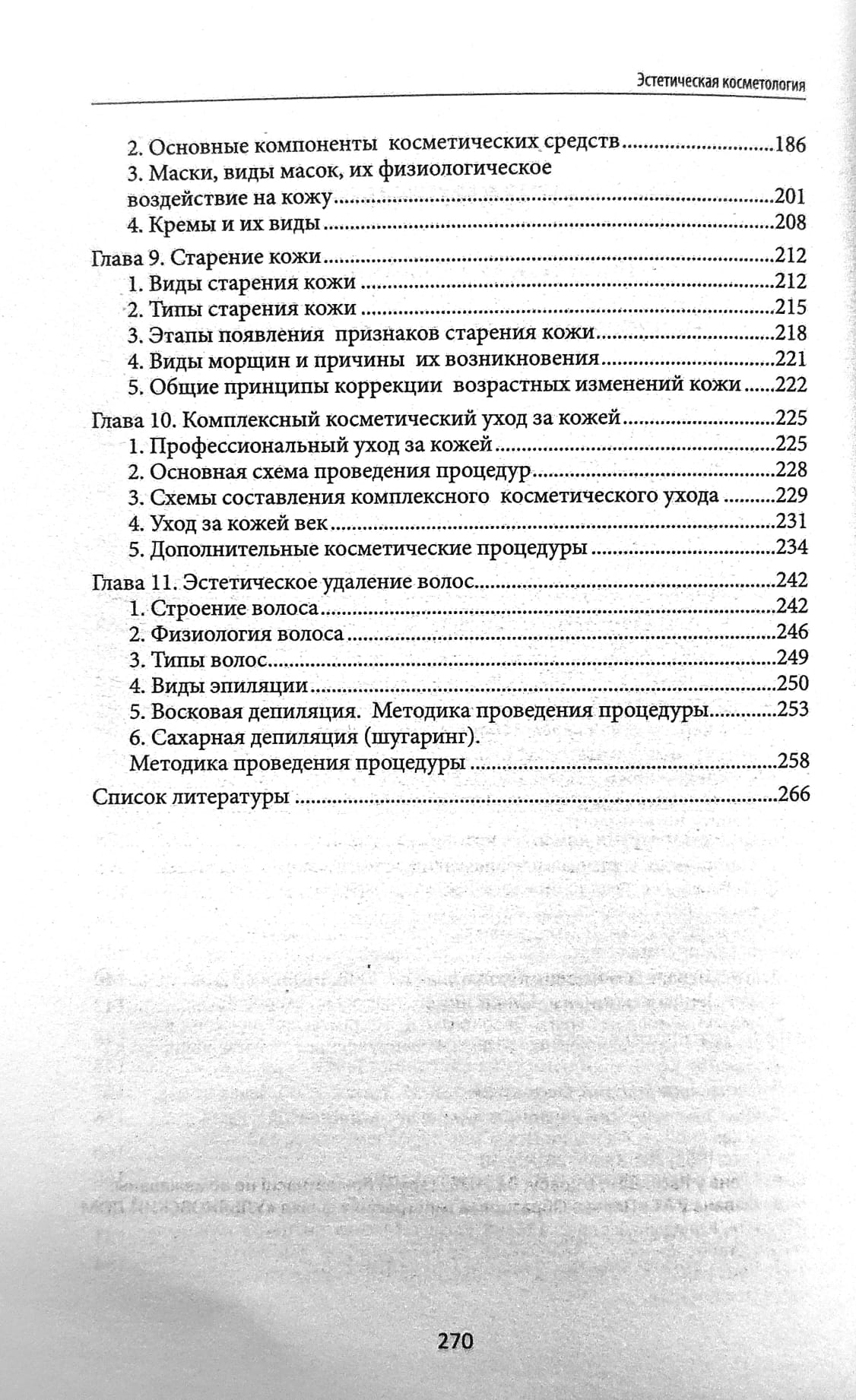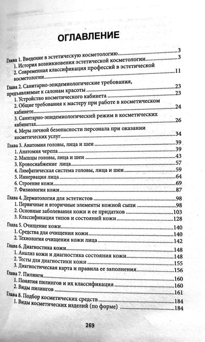 Izdevumā ir vienpadsmit nodaļas, kurās ir aprakstītas mūsdienīgas pieejas mācīšanai šajā specialitātē un sniegts detalizēts, soli pa solim aprakstīts apmācības process, sākot no ievada kosmetoloģijā līdz aparatūras kosmetoloģijai.