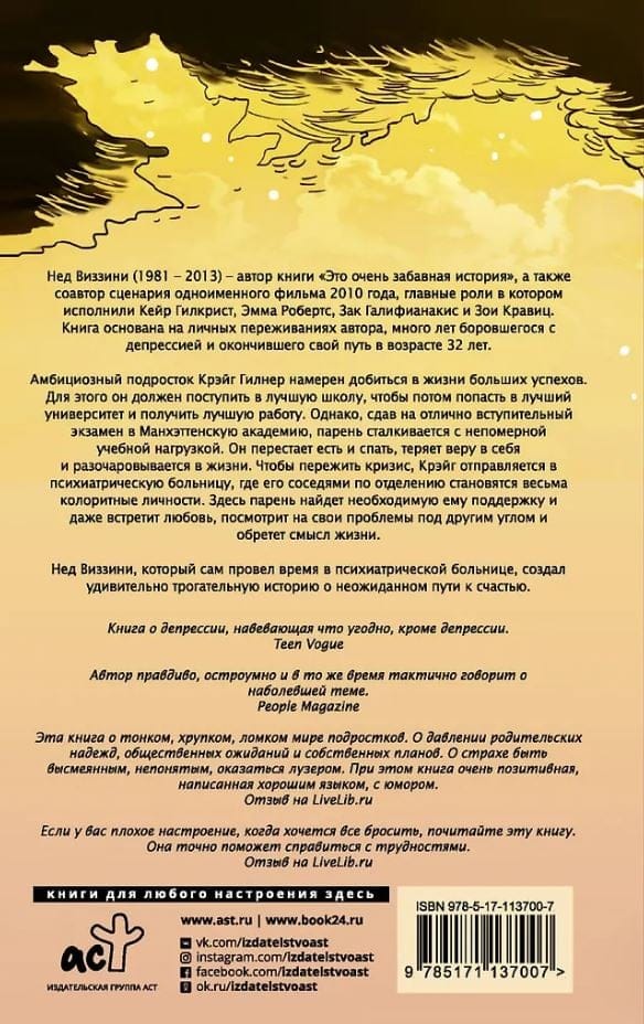 Vērienīgais pusaudzis Kreigs Gilners ir apņēmies gūt lielus panākumus dzīvē. Lai to izdarītu, viņam jāiestājas labākajā skolā, pēc tam jāiekļūst labākajā universitātē un jāiegūst vislabākais darbs. Tomēr pēc tam, kad ar izciliem rezultātiem nokārto iestājeksāmenu Manhetenas akadēmijā, puisim jātiek galā ar pārmērīgu akadēmisko slodzi. Viņš pārstāj ēst un gulēt, zaudē ticību sev un vīlies dzīvē. Lai pārdzīvotu krīzi, Kreigs nonāk psihiatriskajā slimnīcā, kur viņa kaimiņi nodaļā kļūst par ļoti krāsainām personībām. Šeit puisis atradīs nepieciešamo atbalstu un pat satiks mīlestību, paskatīsies uz savām problēmām no cita skatupunkta un atradīs dzīves jēgu. Neds Vicini, kurš pats pavadīja laiku psihiatriskajā slimnīcā, ir radījis pārsteidzoši aizkustinošu stāstu par negaidītu ceļu uz laimi.