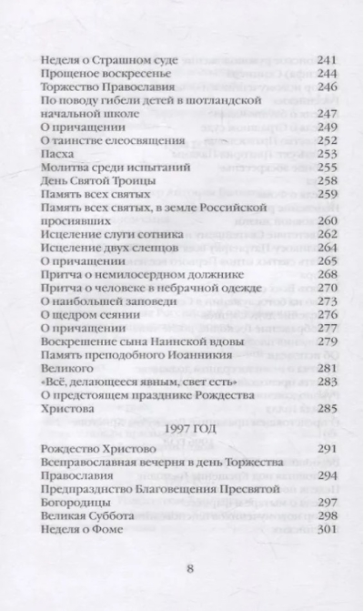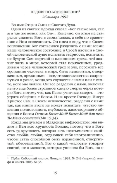 Grāmatā ir ietvertas sprediķi no Vladyka dzīves pēdējiem divpadsmit gadiem, kas pierakstīti hronoloģiskā secībā. Līdztekus sprediķiem par evaņģēliju un svētku dienām Vladyka bieži reaģēja uz notikumiem apkārtējā pasaulē un mainīgās draudzes vajadzībām. Varētu teikt, ka viņa vēlāko gadu sprediķi ir personiskāka rakstura un atklāj daudz par pašu sludinātāju.