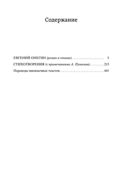 Var teikt, ka viss 19. gadsimts pagājis A. S. Puškina zīmē. Taču pat mūsdienās, 21. gadsimtā, Puškina spožās rindas, kas tūkstoš reižu atkārtotas skolu mācību grāmatās un antoloģijās, nav nolietojušās: tāpat kā viss, kas saistīts ar mūžību, tās sniedz prieku, iedveš cerību un mierinājumu. Šajā izdevumā ir iekļauts romāns pantos "Jevgeņijs Oņegins", kā arī A. S. Puškina slavenākie dzejoļi, kas iekļauti pasaules literatūras dārgumu krātuvē.