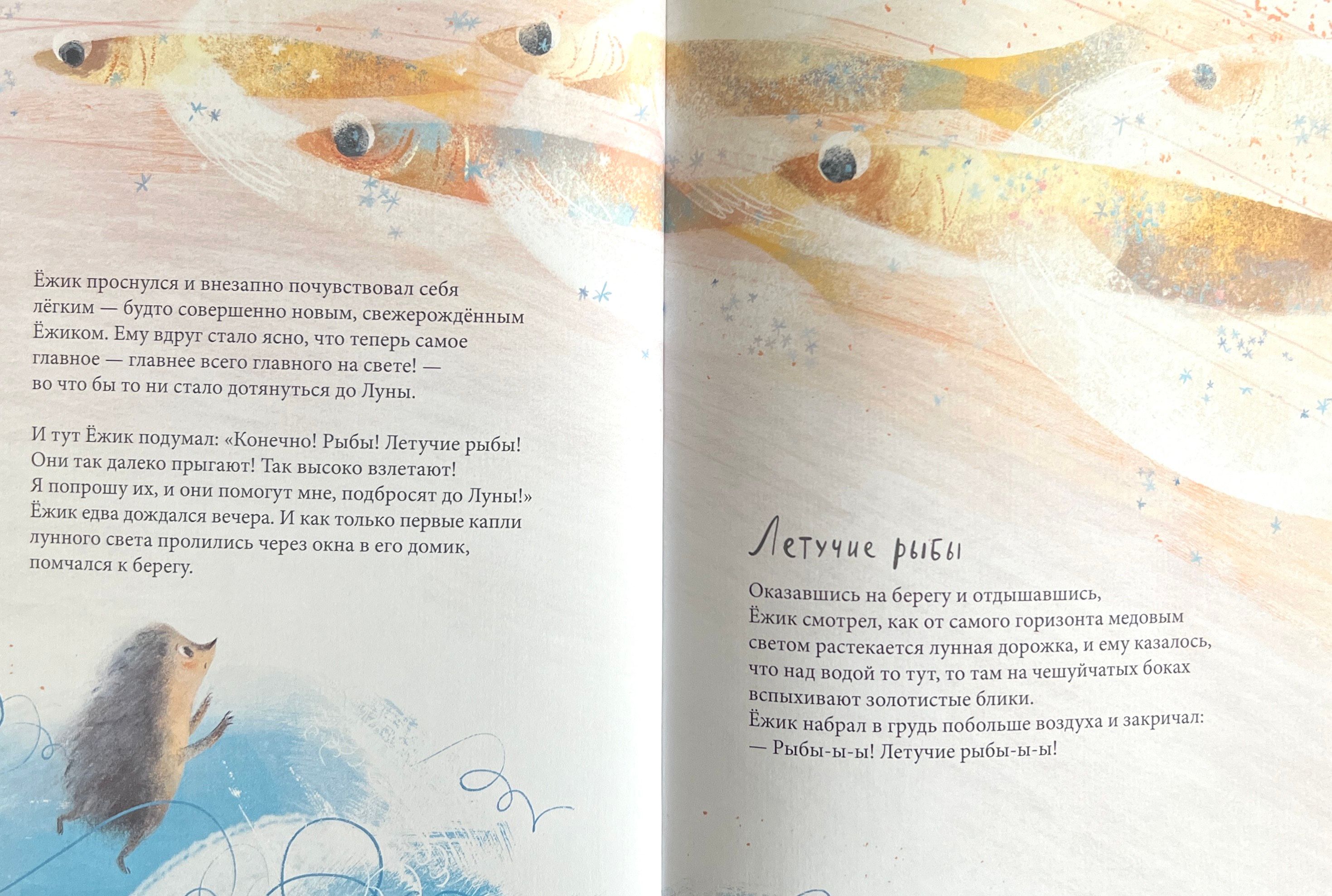 Vienu dienu ezis jūras gaisā sajuta smalku ziedu, mandeļu piena vai lavandas pudiņa smaržu. Izrādījās, ka tā bija tikko dzimušā mēness smarža! Un ezis saprata, ka vissvarīgākā lieta - vissvarīgākā lieta pasaulē! - ir par katru cenu sasniegt mēnesi. Ja viņš viņu apskaidrotu, viņš būtu bezgala laimīgs. Bet vai Mēness būs laimīgs? Pasaku ceļojums, kas piepildīts ar sirsnīgas labestības un cerības gaismu.