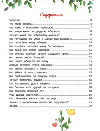 Parādīt mīlestību, dot mīlestību, apņemt sevi ar mīlestību - visas šīs lietas var iemācīties jau no mazotnes un turpināt visu mūžu. Pasakas par dzīvniekiem, dzejoļi un uzdevumi palīdzēs jūsu bērnam izprast vārda "mīlestība" nozīmi. Tās pastāstīs, kā rūpēties par tuviniekiem, kā veidot attiecības ar radiniekiem un vienaudžiem, kā kļūt par iejūtīgu un gādīgu dēlu vai meitu, brāli vai māsu, draugu vai draudzeni, kā mīlēt dabu, mazākos brāļus un visu mūsu pasauli.