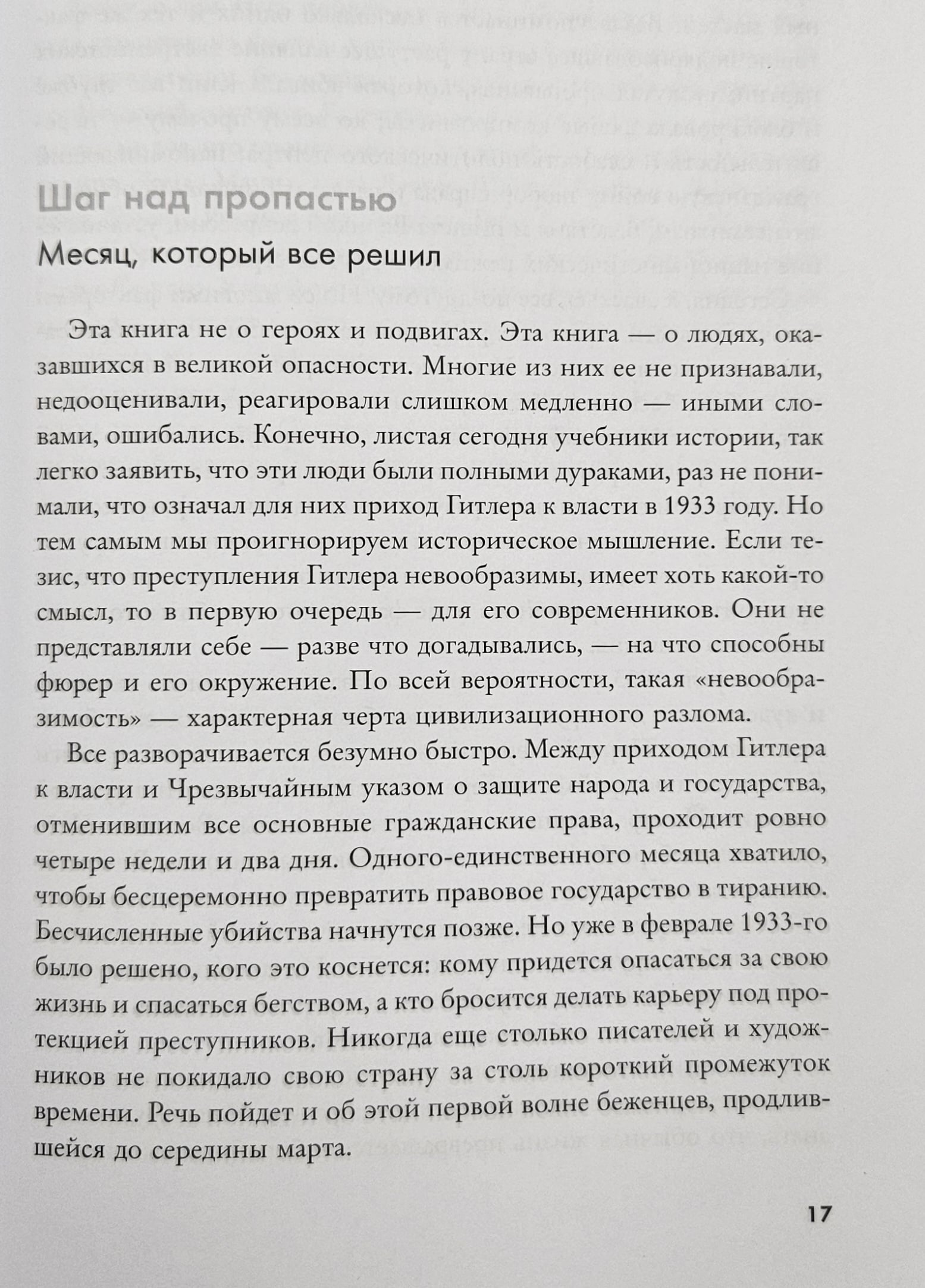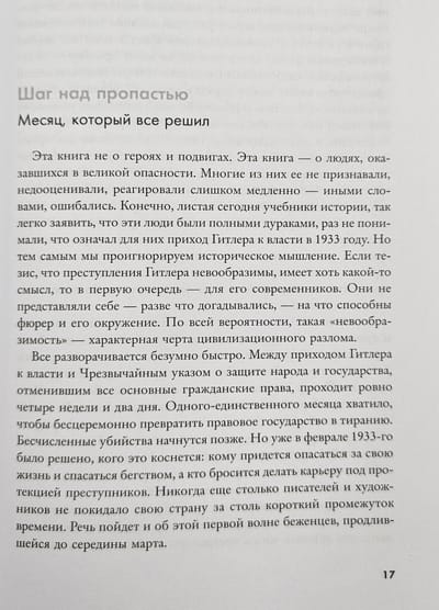 Pamatojoties uz dienasgrāmatām, vēstulēm un arhīva materiāliem, Uwe Witstock no jauna rada vēsturiskā iedalījuma sajūtu, kas satver Vāciju. Nacistiem bija vajadzīgs ne vairāk kā mēnesis, lai vājinātu demokrātiju teroru valdīšanas laikā. 33 vācu intelektuāļu stāsts - no Tomasa Manna un Elzas Laskera-Šīlera līdz Bertoltam Brehtam-kolidiem ar ielu sadursmju hroniku, kur labo sitienu un nogalina kreiso-un otrādi.