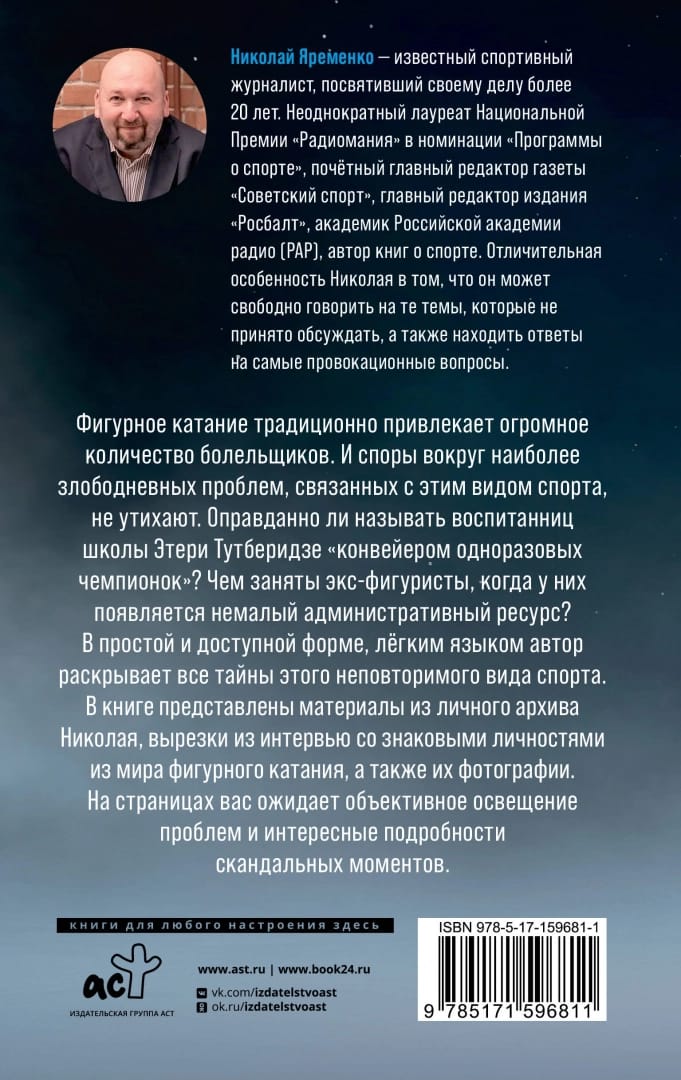 Daiļslidošana tradicionāli ir piesaistījusi milzīgu fanu skaitu. Un debates par aktuālākajām ar šo sporta veidu saistītajām problēmām nemazinās. Vai ir pamatoti Eteri Tutberidzes skolas audzēkņus dēvēt par "vienreizējo čempionu konveijeru"? Ko dara bijušie daiļslidotāji, kad viņu rīcībā ir ievērojams administratīvais resurss? Nikolajs Jaremenko ir pazīstams sporta žurnālists un daudzu grāmatu par sportu autors. Vienkāršā un saprotamā formā, vieglā valodā viņš sniedz atbildes uz visiem galvenajiem jautājumiem par šo unikālo sporta veidu.