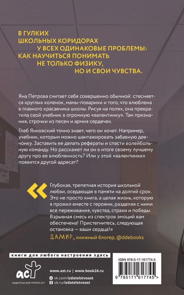 Yana Petrova uzskata sevi par diezgan parastu: viņai ir kauns par apaļiem ceļgaliem, mammu un to, ka viņa ir iemīlējusies skolas galvenajā izskatīgajā zēnā. Zīmējot malās, viņa pārvērta savu mācību grāmatu par milzīgu valentīnu. Ir atzīšanās, rindas no dziesmām un sirds armija.