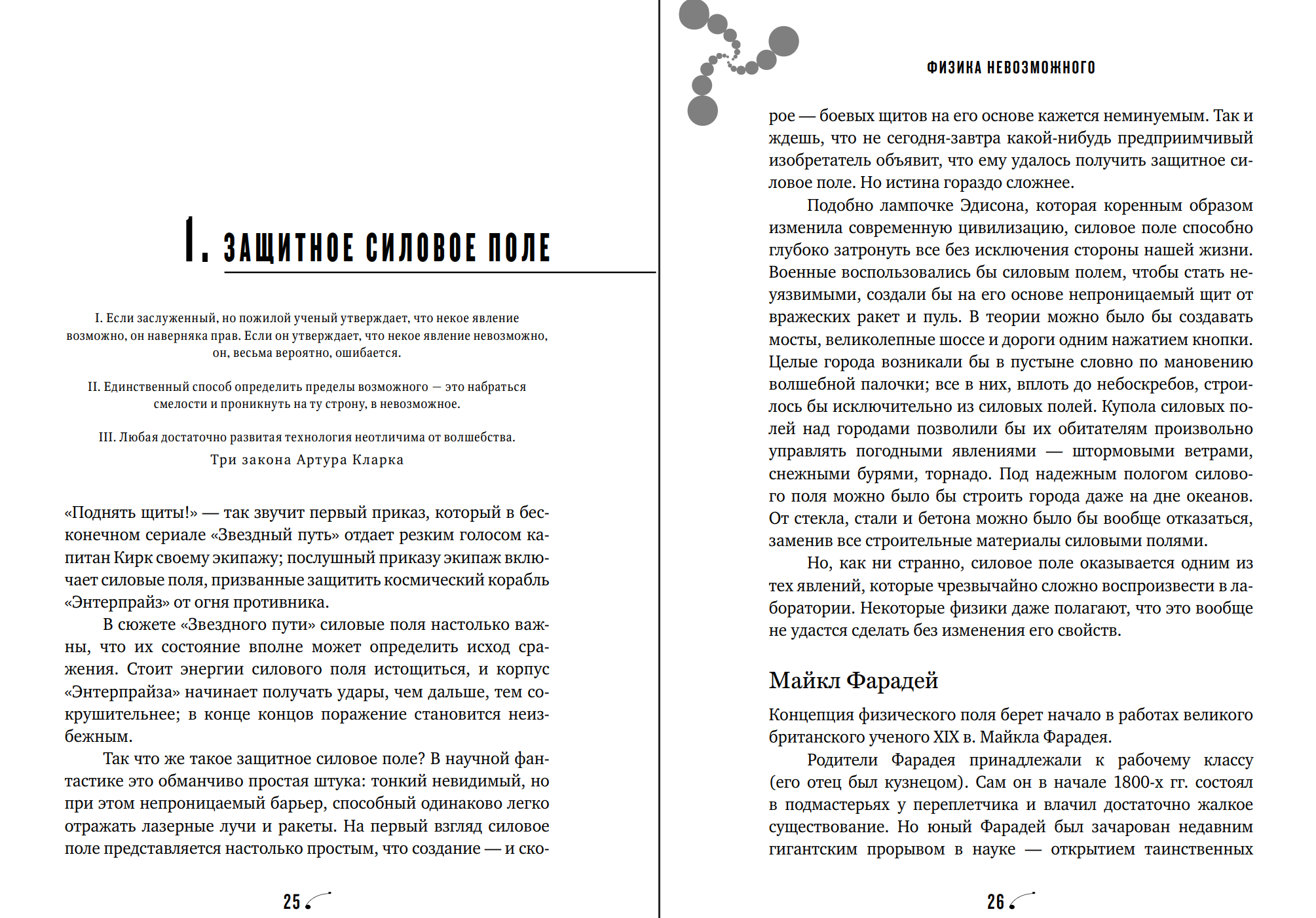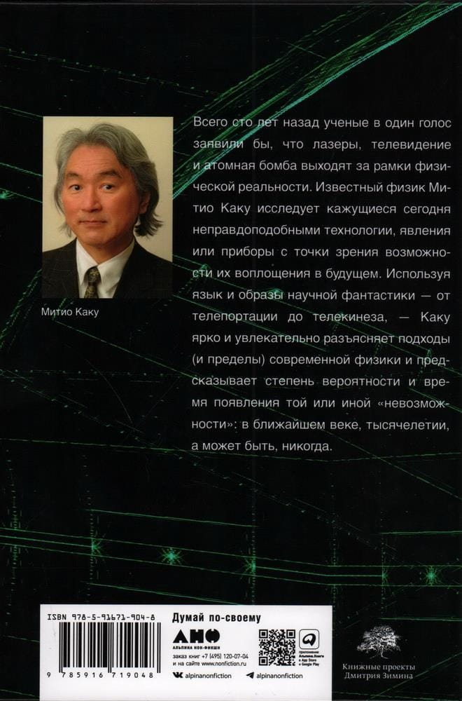 No grāmatas "Neiespējamās fizikas" jūs uzzināsiet, ka jau 21. gadsimtā, mūsu dzīves laikā, tiks realizēti spēka lauki, neredzamība, domu lasīšana, saziņa ar ārpuszemes civilizācijām un pat teleportācija un starpzvaigžņu ceļojumi.