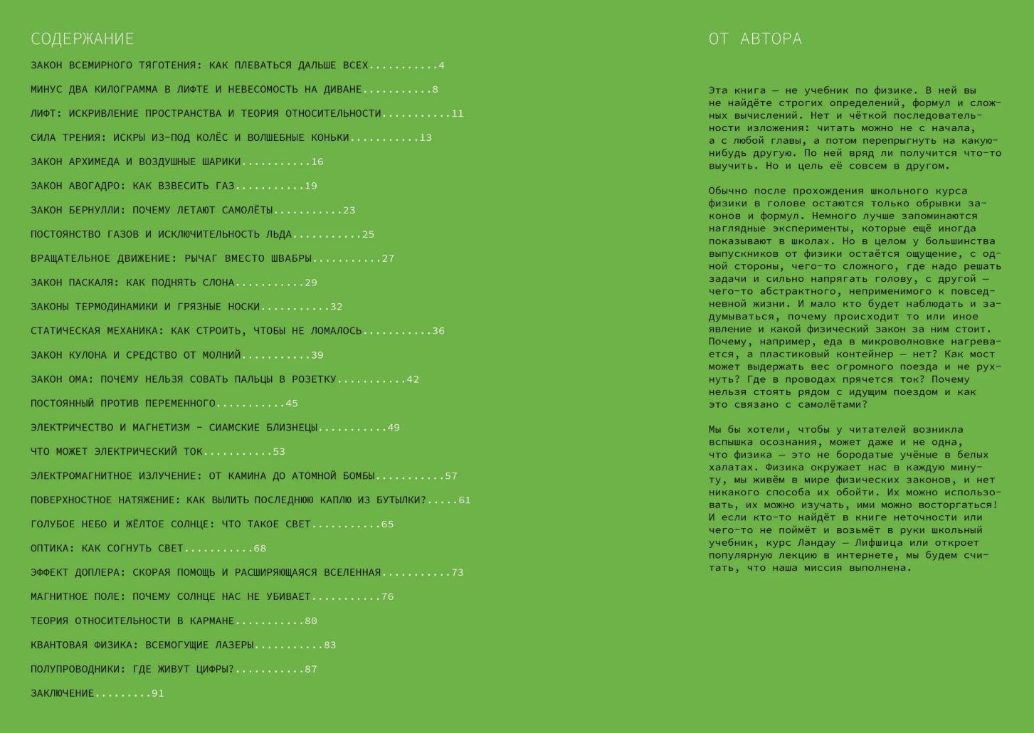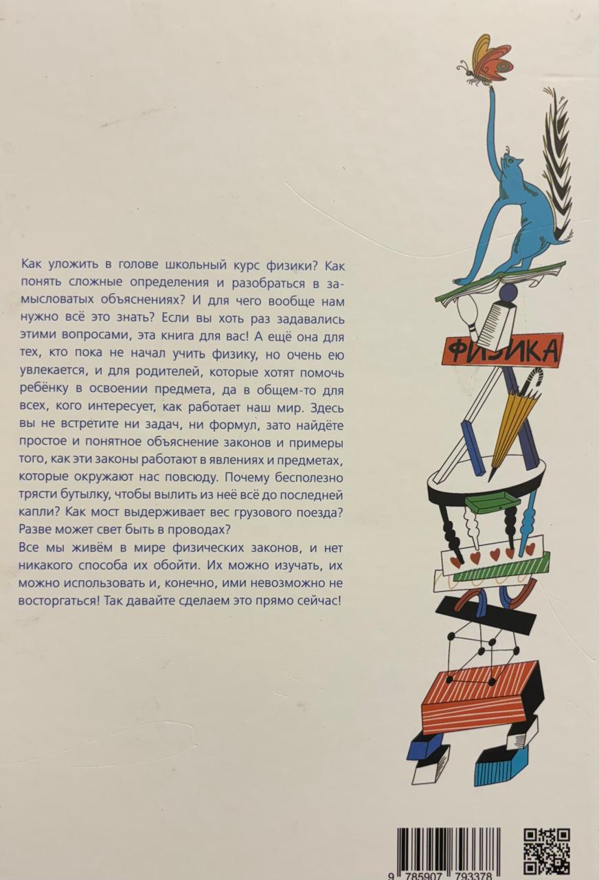 Kā aptvert skolas fizikas kursu? Kā saprast sarežģītas definīcijas un rast jēgu sarežģītiem skaidrojumiem? Un kāpēc mums tas viss vispār jāzina? Ja kādreiz esat uzdevuši sev šos jautājumus, šī grāmata ir domāta jums! Tā ir domāta arī tiem, kas vēl nav sākuši studēt fiziku, bet ir aizrautīgi par to, vecākiem, kuri vēlas palīdzēt savam bērnam apgūt šo priekšmetu, un patiesībā ikvienam, kuru interesē, kā darbojas mūsu pasaule. Šeit jūs neatradīsiet nekādus uzdevumus vai formulas, bet gan vienkāršus un skaidrus likumu skaidrojumus un piemērus tam, kā šie likumi darbojas parādībās un objektos, kas mūs visus ieskauj. Kāpēc pudeles kratīšana ir bezjēdzīga, lai izspiestu katru pēdējo pilienu? Kā tilts notur kravas vilciena svaru? Vai gaisma tiešām var pastāvēt vados?