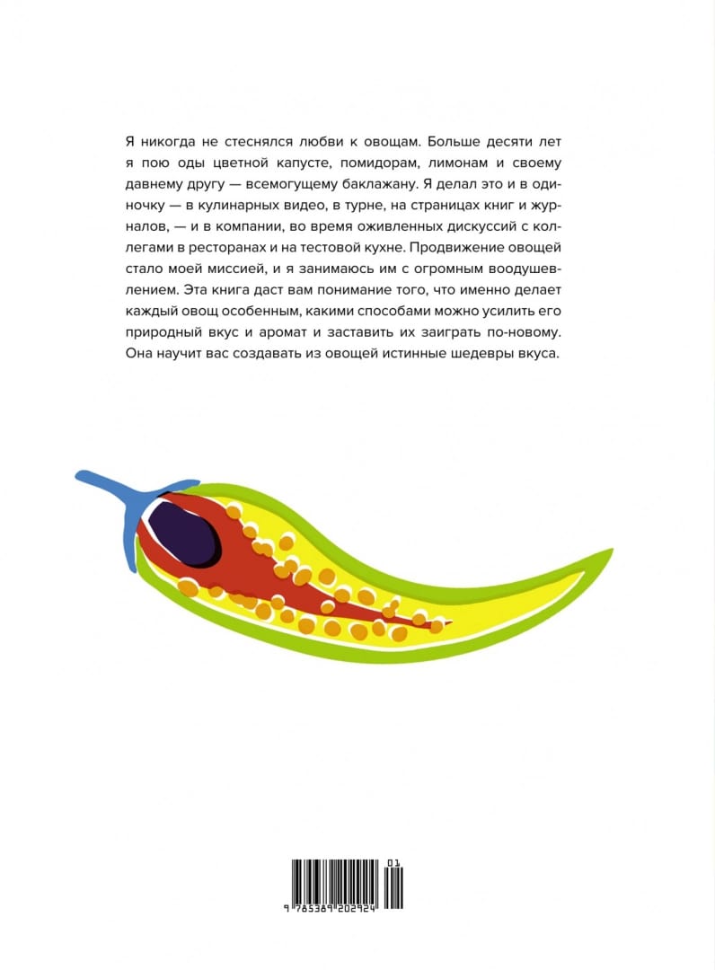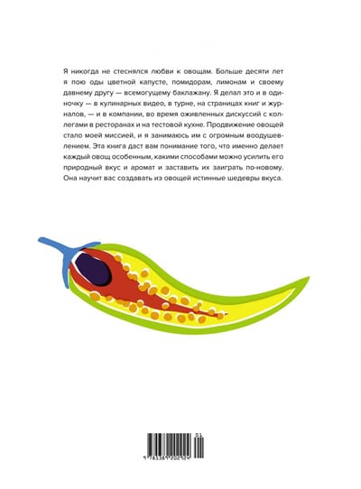"Šī grāmata ir veltīta dārzeņiem un iemācīs, kā no tiem radīt īstus garšas šedevrus. Pirmajā nodaļā aprakstīti pamatprocesi, kas notiek dārzeņu un citu svarīgu sastāvdaļu pagatavošanas laikā. Otrajā nodaļā stāstīts, ar ko tos kombinēt, lai izceltu to īpašības. Trešajā nodaļā ir aplūkoti paši produkti - tīrais garšas dziļums, kas dažiem no tiem piemīt jau no dabas, un tas ļauj tiem ieņemt nozīmīgu lomu ēdienā, kļūstot par vairāk vai mazāk patstāvīgu tā sastāvdaļu vai komponentu, kas pastiprina un izceļ citu dārzeņu garšu. No 100 grāmatā iekļautajām receptēm 45 no tām ir stingri vegāniskas, bet vēl 17 ir "veganizētas". Neatkarīgi no jūsu personīgajām vēlmēm, esmu pārliecināts, ka jūs atradīsiet pietiekami daudz iemeslu pievienoties man un slavēt visas dārzeņu piedāvātās garšas un smaržas." ( Yotam Ottolenghi)