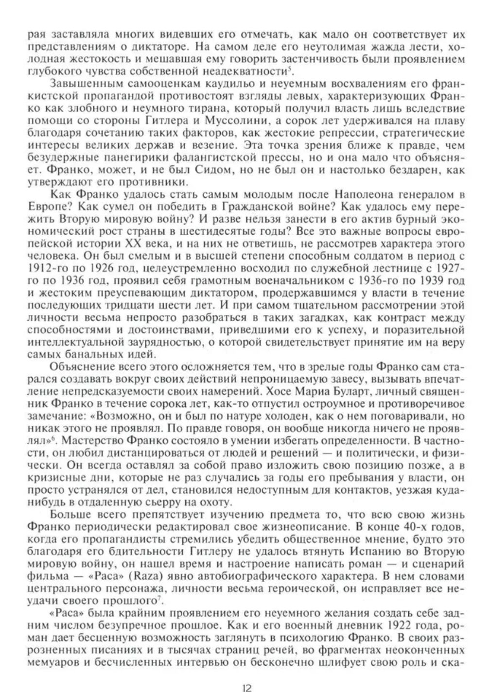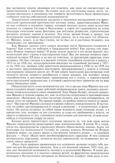 Šī grāmata, kas ir daudzu gadu zinātniskā darba kulminācija, ir unikāla savā veidā: autors neaprobežojas tikai ar viena indivīda dzīvi, bet gan sniedz visaptverošu priekšstatu par Spānijas, Eiropas un pasaules attīstību daudzu gadu desmitu garumā, piedāvājot bagātīgu viedokļu paleti no viena no 20. gadsimta noslēpumainākajām personībām laikabiedriem. Sekojot autora gaitām cauri visam varoņa mūžam, lasītājs, manuprāt, spēs atbildēt uz jautājumu, kādām rakstura īpašībām vajadzētu un kādām nevajadzētu piemist civilizētas valsts cilvēkam, kurš, pacēlies varas hierarhijas pašā augšgalā, var apspiest visu sabiedrību, vienpersoniski izlemt veselas tautas likteni, sodīt ar nāvi un apžēlot pēc savas patikas – citiem vārdiem sakot, kļūt par totalitāru valdnieku.