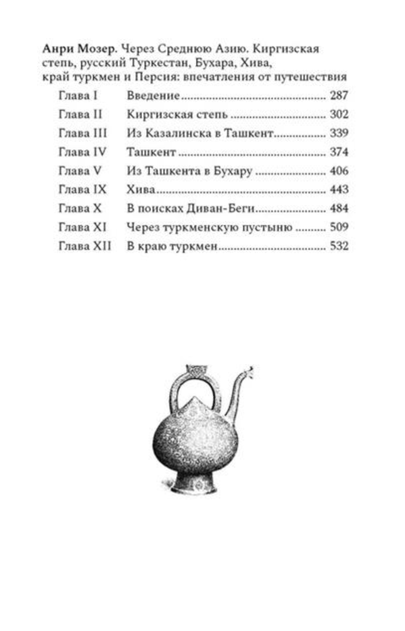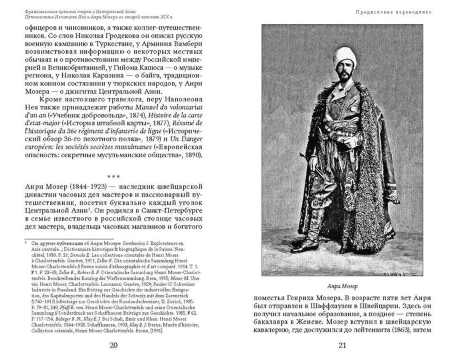 Šajā izdevumā ir apkopotas Anrī Mozera un Napoleona Neja ceļojumu esejas, kas publicētas franču valodā 19. gadsimta 80. gados. Tās pirmo reizi šādā apjomā ir tulkotas krievu valodā. Grāmata paredzēta vēsturniekiem, etnogrāfiem un visiem, kurus interesē Centrālāzijas vēsture un materiālā kultūra, koloniālistika un orientālisma problēmas.