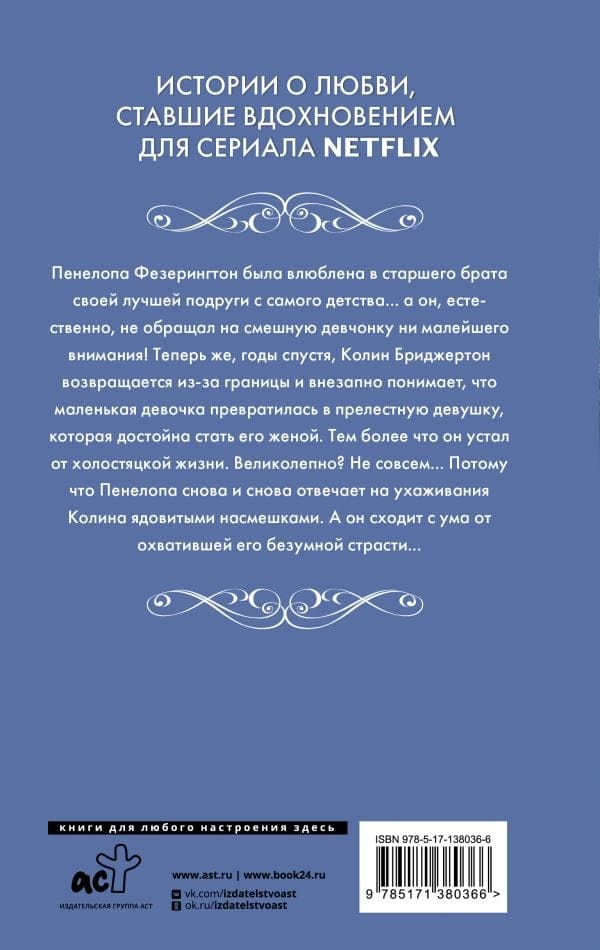 Penelope Featherington kopš bērnības bija iemīlējusies savas labākās draudzenes vecākajā brālī... un viņš, protams, smieklīgajai meitenei nepievērsa ne mazāko uzmanību! Tagad, pēc gadiem, Kolins Bridžertons atgriežas no ārzemēm un pēkšņi saprot, ka mazā meitene ir izaugusi par jauku jaunu sievieti, kas ir cienīga kļūt par viņa sievu. Turklāt viņš bija noguris no vecpuišu dzīves. Pasakains? Ne gluži... Jo Penelope uz Kolina sasniegumiem atkal un atkal atbild ar indīgiem ņirgājumiem. Un viņš kļūst traks no neprātīgās kaislības, kas viņu pārņēmusi...
