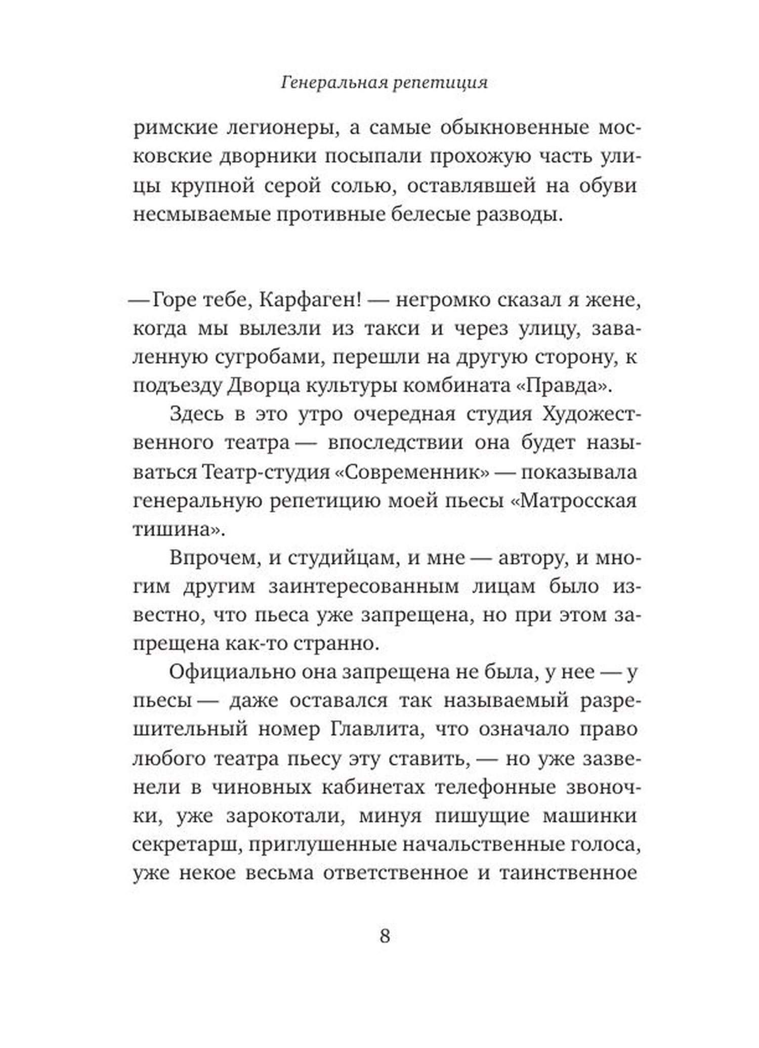 1958. gadā jauniešu teātra studiju, kas drīz vien kļuva par teātri Sovremennik, nolēma atvērt ar jaunu Aleksandra Galiča lugu Jūrnieka klusums. Šīs kara lugas centrā ir stāsts par ebreju ģimeni, kuras galva mirst nacistu geto, bet viņa dēls vijolnieks Deivids tiek nogalināts frontē. Varas iestādes lugu aizliedza, un tā pirmo reizi tika uzvesta tikai 1988. gadā. Stāsts par neveiksmīgo iestudējumu veidoja autobiogrāfiskā stāsta “Dressmēģinājums” pamatu.