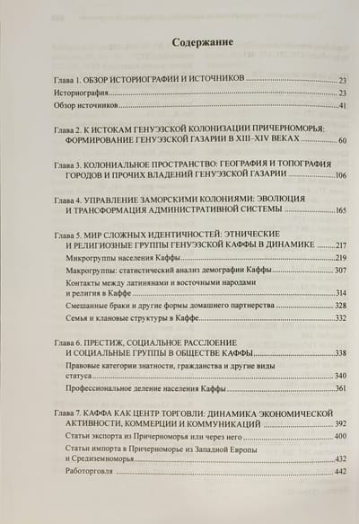 Šis pētījums koncentrējas uz Dženovas koloniju sistēmu Melnās jūras reģionā un tās sarežģītajām daudzetniskajām sabiedrībām. Tajā tiek pētīta koloniālo modeļu nepārtrauktība, atklāta vēlo viduslaiku un agrīno moderno kolonizācijas veidošanās nozīme, pilsētu demogrāfija un Kaffas daudzetniskās sabiedrības funkcionēšana tās mijiedarbībā ar ārpasauli. Darbs piedāvā jaunu šīs vēlo viduslaiku koloniālās daudzetniskās sabiedrības funkcionēšanas interpretāciju un noraida plaši izplatīto naratīvu, kas attēlo visu 15. gadsimta Kaffas vēsturi kā pastāvīgas lejupslīdes un iedzīvotāju skaita samazināšanās periodu.