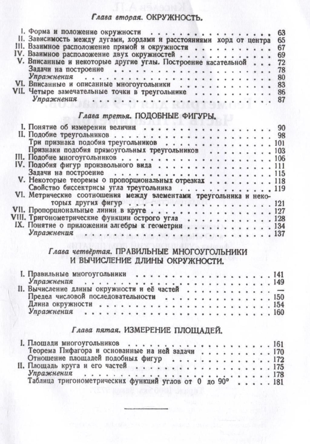 Šī publikācija ir 1. daļa no ģeometrijas mācību grāmatas vidusskolas 6.–9. klases skolēniem un satur informāciju par plaknes ģeometriju – elementārās ģeometrijas sadaļu, kurā tiek pētītas figūras plaknē. Lasītāji iepazīsies ar plaknes ģeometrijas pamatjēdzieniem (punkts, līnija, plakne), pētīs figūru līdzības pazīmes, iemācīsies aprēķināt apļa garumu un figūru laukumu. Lai nostiprinātu teorētisko materiālu, mācību grāmatā ir piedāvāti uzdevumi un vingrinājumi. Šī grāmata galvenokārt paredzēta vidusskolas skolēniem un skolotājiem. To var izmantot stundās un kā papildu materiālu iegūto zināšanu nostiprināšanai. A. P. Kiseļova mācību grāmata kļūs par uzticamu palīgu skolēnam augstu akadēmisko rezultātu sasniegšanā.