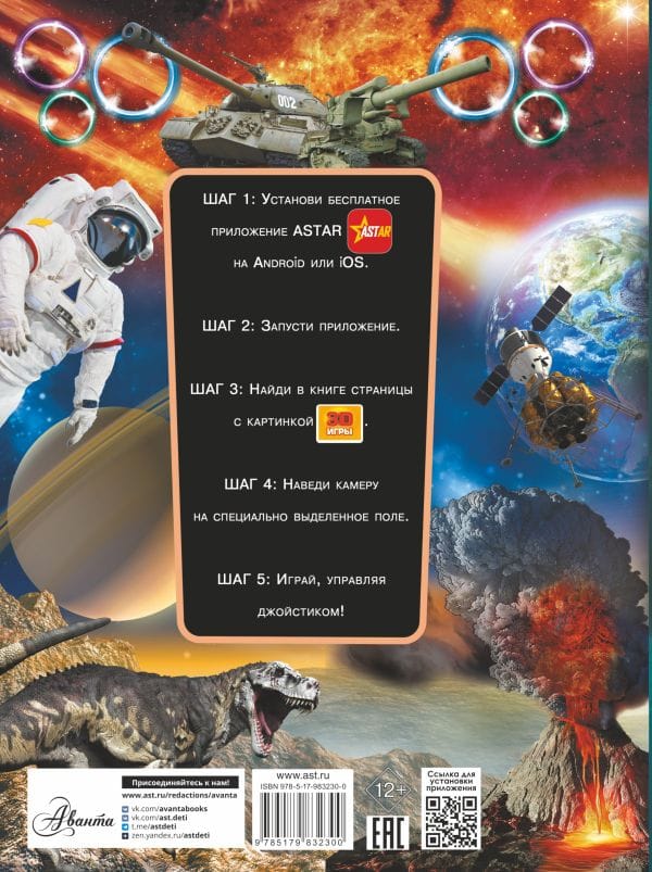 Tu augat, un milzīgā pasaule pamazām atklāj tev savus noslēpumus. Bet tu vēlies zināt visu uzreiz un par visu pasaulē! Tad kas par lietu? Atver mūsu unikālās milzu enciklopēdijas lappuses, un tev būs unikāla iespēja izzināt Visuma noslēpumus, labāk iepazīt mūsu dzimto planētu, tās aizvēsturiskos un mūsdienu iedzīvotājus, kā arī dažāda veida tehnoloģijas - cilvēku roku darbu. Tu varēsi ne tikai lasīt par visu šo vai aplūkot mūsu spilgtās, krāsainās ilustrācijas, bet arī redzēt atbildes uz saviem jautājumiem apjomā un kustībā. Vērojiet planētu kustību orbītā un apbrīnojiet polārblāzmu, vērojiet vali, kas debesīs palaiž ūdens strūklaku, un piedalieties aizraujošā cīņā - tas un vēl daudz kas cits kļūs tev pieejams ar mūsu milzu 3D enciklopēdiju ar papildināto realitāti. Un visas šīs negaidītās iespējas pārvaldīsi pats. Kā tas ir iespējams? Atver enciklopēdijas lapu, kas tevi interesē, pavērs pret to savu viedtālruni vai planšetdatoru ar instalētu bezmaksas mobilo lietotni ASTAR, un tavā priekšā pavērsies vēl nebijušas papildinātās realitātes iespējas. Mūsu unikālā bērnu enciklopēdija ne tikai dalīsies ar jums jaunās zināšanās, bet arī sniegs daudz elpu aizraujošu piedzīvojumu. Atveriet šo grāmatu – un jums tiks atklāti Visuma noslēpumi. Ticiet man – garlaicīgi nebūs!