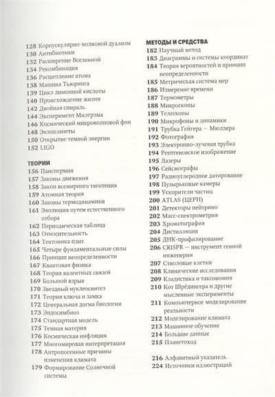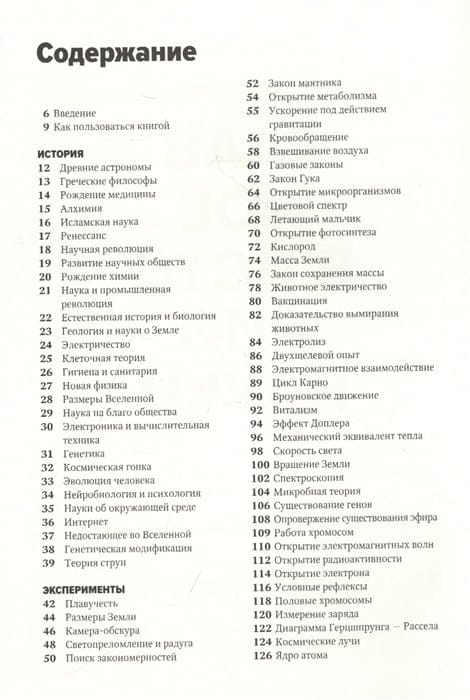 Šī grāmata ir jauns ievads zinātnisko atziņu vēsturē. Grāmatā, kas aptver 60 galvenos eksperimentus, sākot no Arhimēda veiktajiem peldspējas pētījumiem līdz pat tumšās enerģijas atklāšanai, un pēc tam tos sasaista ar zinātnisko disciplīnu rašanās vēsturi, kā arī ar galvenajām teorijām un pētniecības metodēm, saprotami izskaidroti galvenie zinātniskie atklājumi, kas ir pamatā mūsu pašreizējai izpratnei par dzīvi un Visumu. Grāmatas īpašais formāts - ar savstarpējām atsaucēm un skaidrojumiem - ļauj izprast sarežģītus zinātniskus jēdzienus, izcelt katra zinātniskā atklājuma nozīmi un aplūkot tos visas zinātnes vēstures kontekstā. Šajā grāmatā kodolīgi un saprotami izklāstītā informācija popularizē zinātni plašai auditorijai un ierauj aizraujošajā zinātnes atziņu vēsturē.