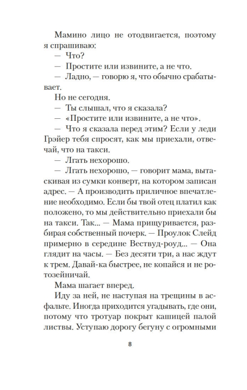 Tātad, laipni lūgti Sleida alejā. To nav viegli atrast Londonas nomales labirintā. Meklējiet sienā mazas melnas dzelzs durvis. Nav roktura, nav atslēgas cauruma, bet pieskarieties tām, un tās atvērsies. Jūs sagaidīs saulē pieliets vecs dārzs un iespaidīga savrupmāja — pārāk grezna šai apkārtnei, pārāk liela šim kvartālam. Jūs tiksiet uzaicināti iekšā, un jūs nevarēsiet atteikties...