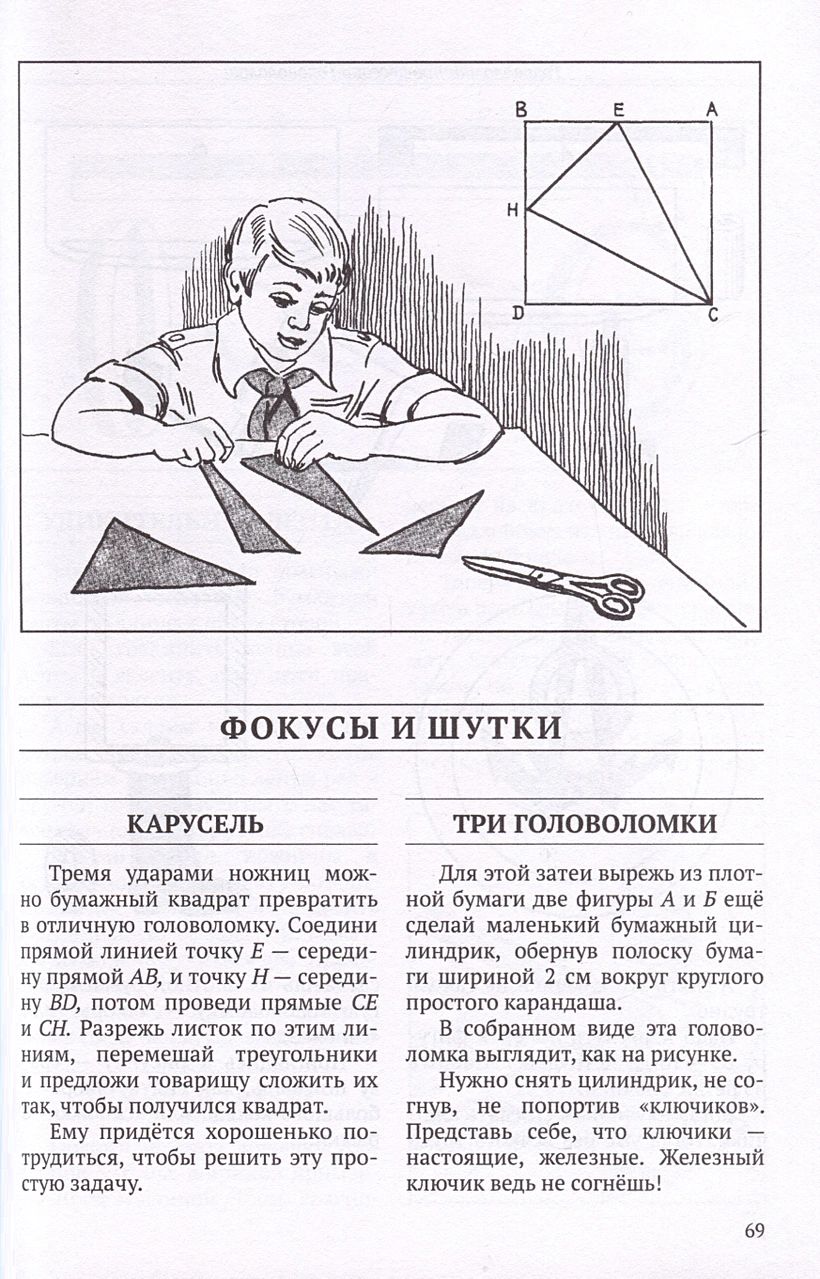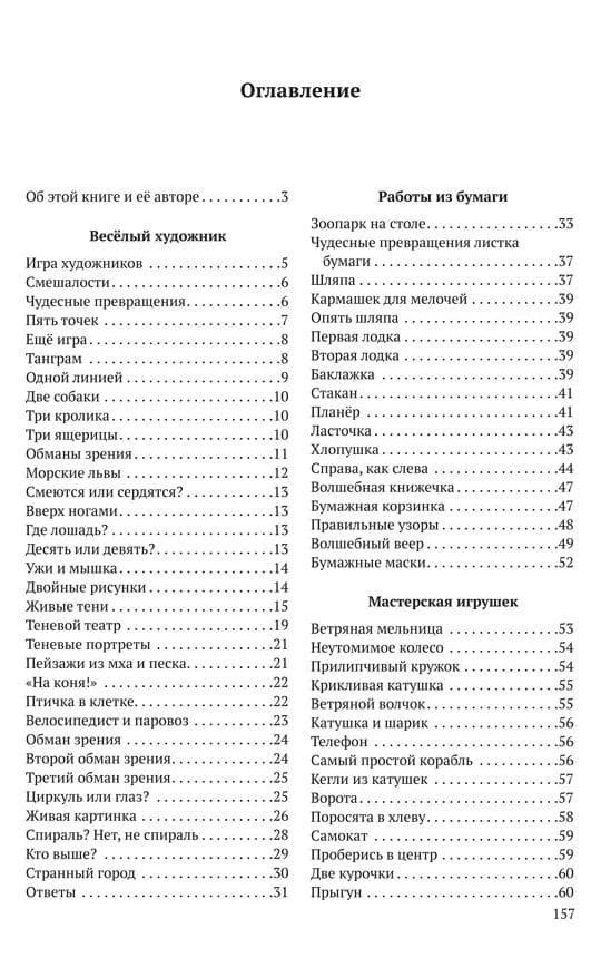 Šajā krājumā apkopoti labākie triki, pašdarinājumi, viltības un izklaidējoši uzdevumi no dažādām M. Geršenzona grāmatām. Mūsdienās, interneta laikmetā, šādi uzdevumi kļūst īpaši nozīmīgi: tie māca bērnam strādāt ar papīru, šķērēm, līmi un atjautības līmēšanas ierīcēm, kā arī attīsta inteliģenci, atjautību, tēlaino domāšanu un smalko motoriku. Risinot problēmas un mīklas, bērniem būs nepieciešama loģika, bet, risinot triku noslēpumus, - zināšanas par fizikas likumiem. Un galvenais, ka jautrām spēlēm nav nepieciešami nekādi papildu rīki, tikai parocīgi materiāli, atjautība un pacietība. Grāmata būs interesanta ne tikai pulciņu un pulciņu vadītājiem, skolotājiem un audzinātājiem, bet arī vecākiem, kuri vēlas nodarbināt savus bērnus un novērst viņu uzmanību no virtuālās pasaules.