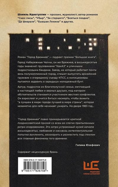 Šamils Idjatuliņs ir romānists, žurnālists, divkārtējs Lielās grāmatas balvas laureāts un romānu "Lapsas smiekli", "Ubirs", "Līdz februārim", "Vecākajam", "Bijušais Ļeņins", "Pēdējā reize" un citu autors.